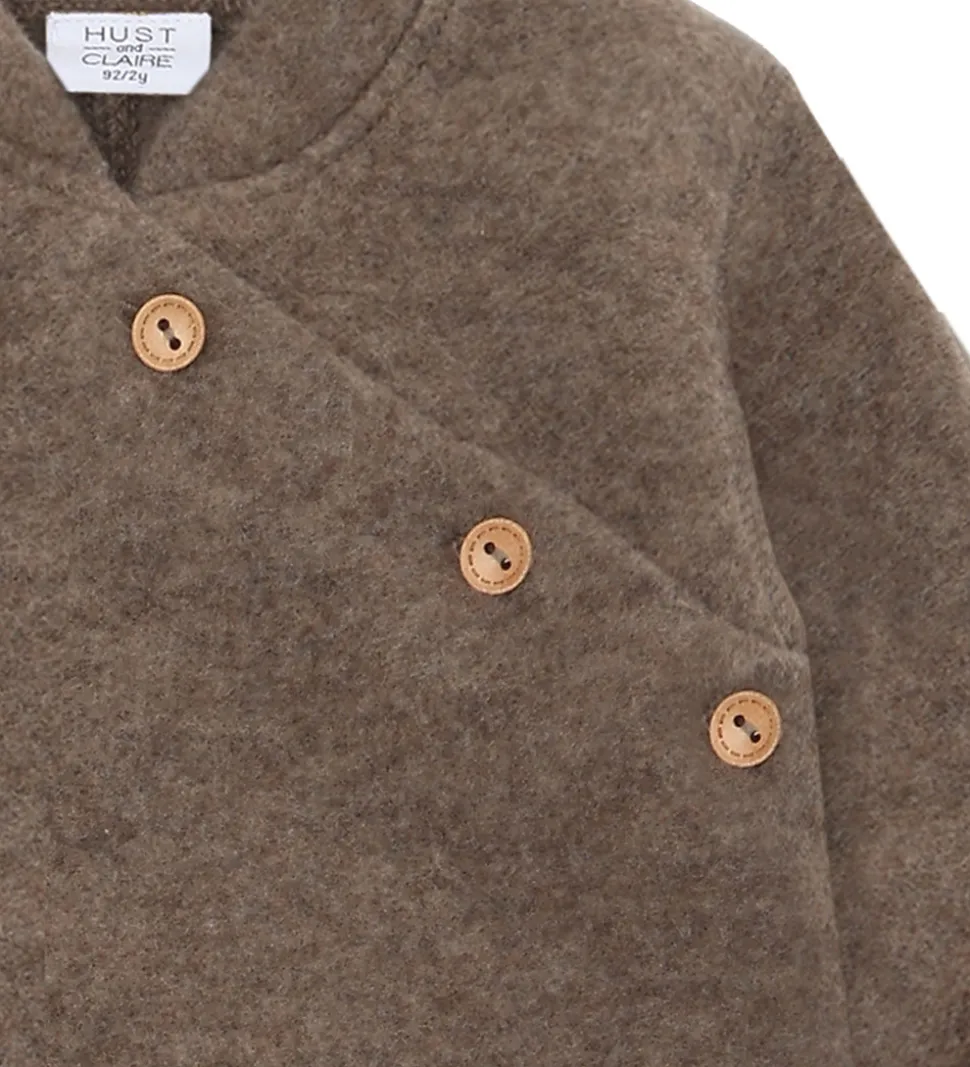 Indbydende Hust and Claire køredragt i en meleret, brun farve. Køredragten er designet i en blød kvalitet, der tilbyder et enkelt look uden mønster eller print.