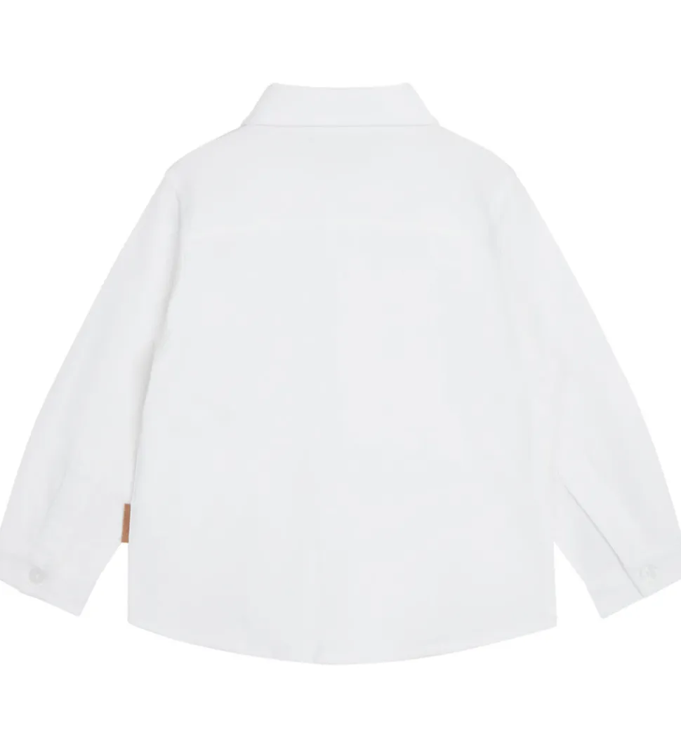 Elegant Hust and Claire skjorte i hvid med lange ærmer og klassisk krave. Skjorten har en praktisk lomme på brystet og gennemgående knapper fortil. Et tidløst design, der passer til enhver anledning.