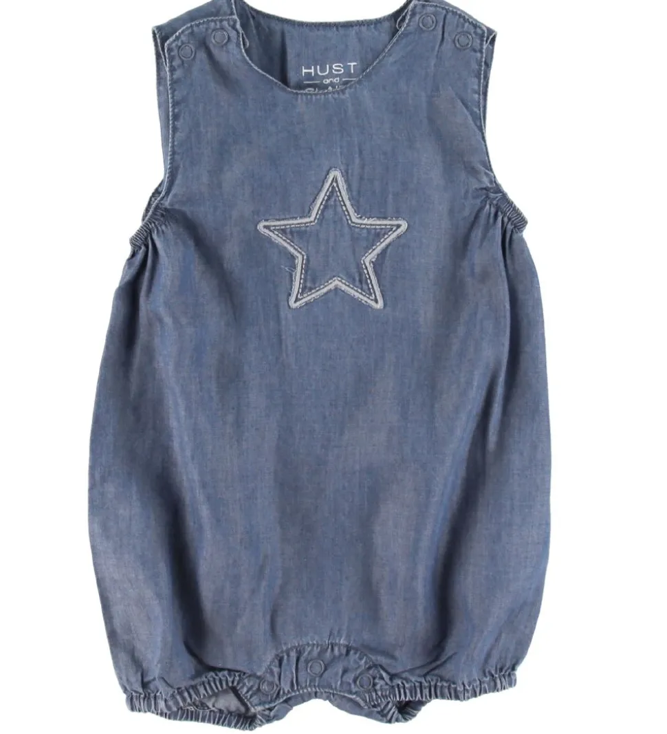Smuk Hust and Claire sommerdragt i blå denim i en let kvalitet med en broderet stjerne fortil.