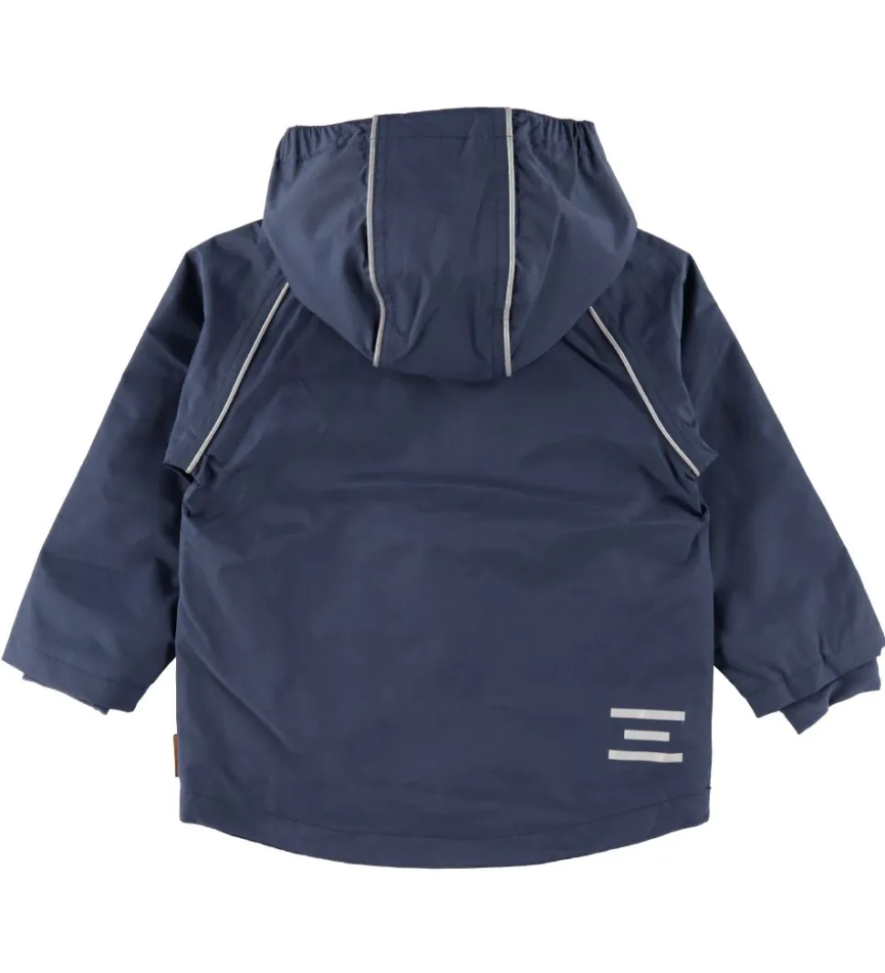 Fin Hust and Claire sommerjakke i mørkeblå med reflekspipings omkring skuldrene og på hætten.
