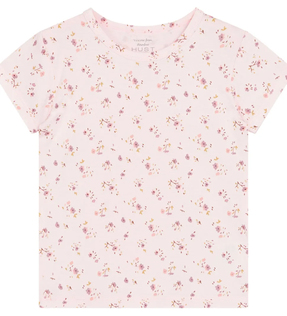 Skøn Hust and Claire t-shirt i en lys rosa nuance. T-shirten har et delikat blomsterprint i rosa, lilla og brune nuancer, der tilføjer et friskt og legende udtryk til garderoben. Perfekt til varme dage og hygge stunder.