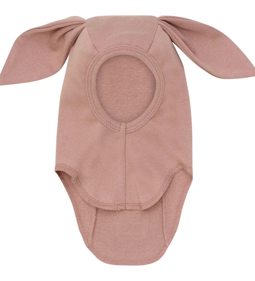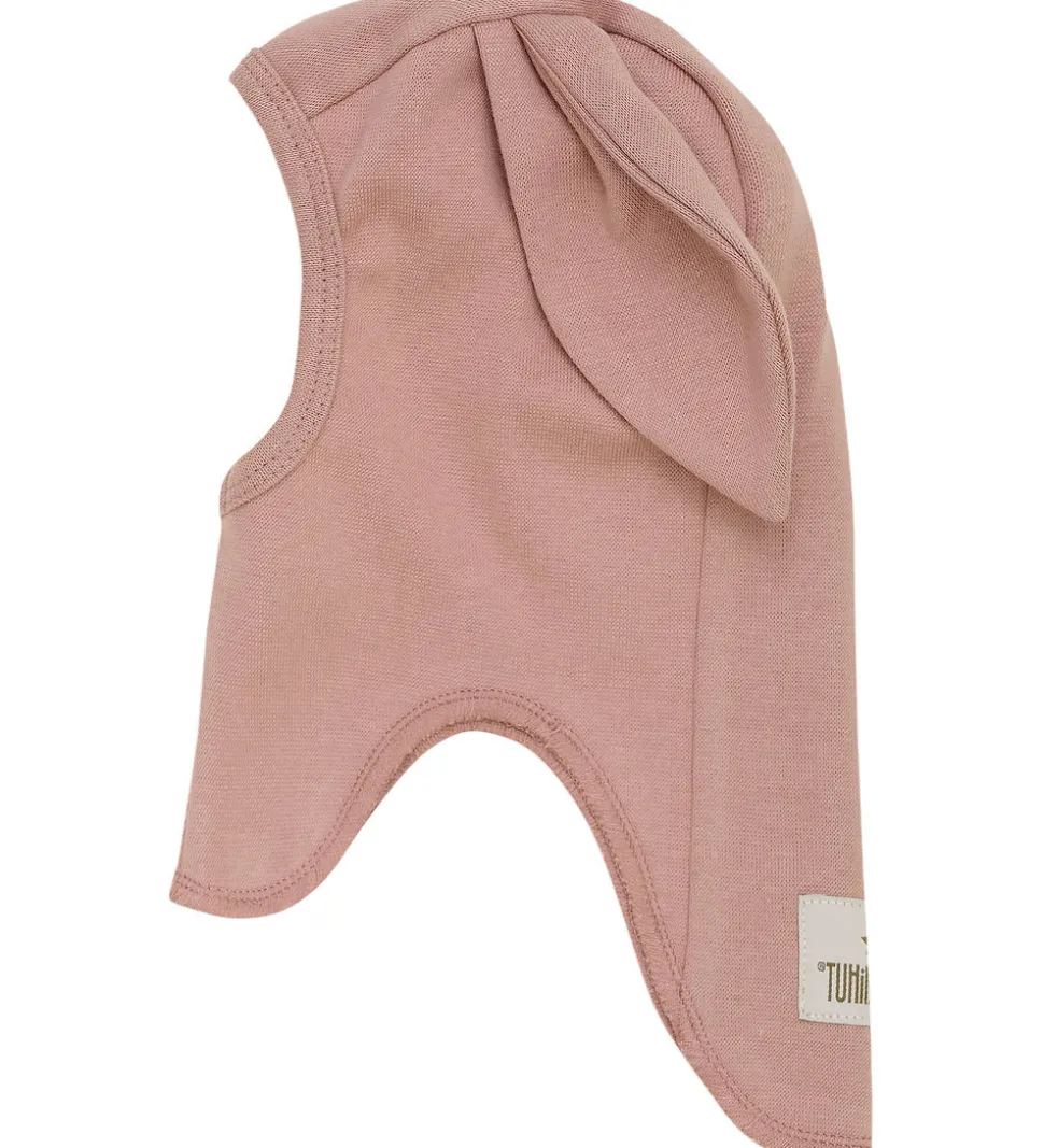 Fin Huttelihut elefanthue i ensfarvet rosa og med en logopatch i nakken.