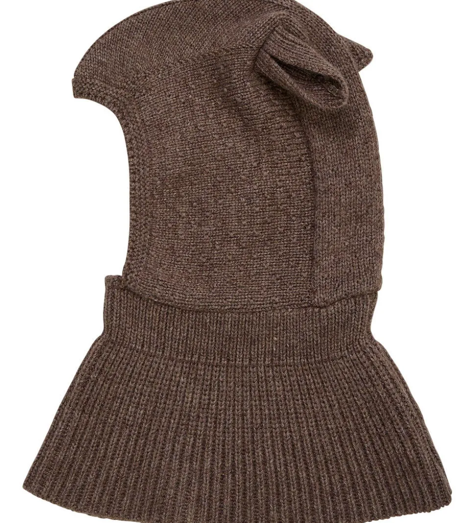 Lækker Huttelihut elefanthue strikket i en blød uldblanding af kashmir og merinould. Elefanthuen er mørkebrun og pyntet med fine, små ører på toppen.