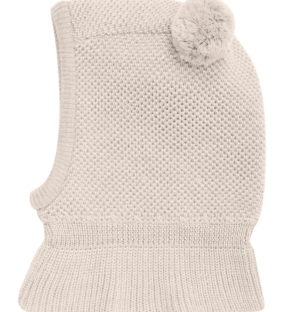 Huttelihut elefanthuen har en rund hovedform med en bred ribkant i ansigtsåbningen og rundt om halsen. Ved ørene er der et praktisk vindstop, som beskytter mod vinden. Elefanthuen er lavet af lunt merinould på ydersiden, mens foring er af bomuld.