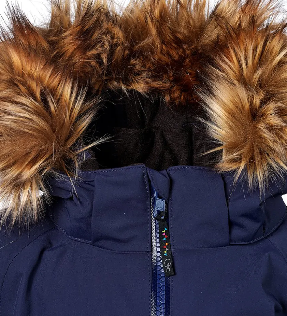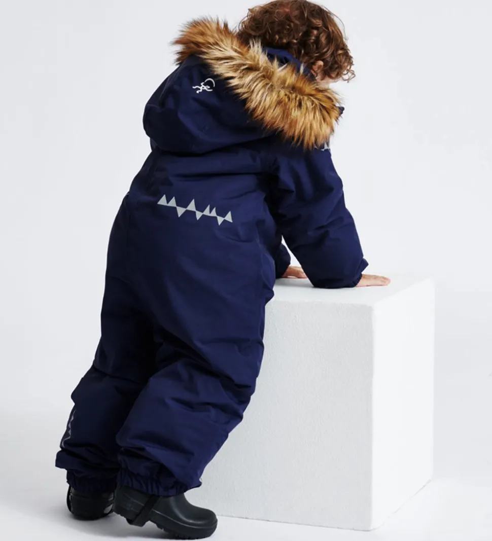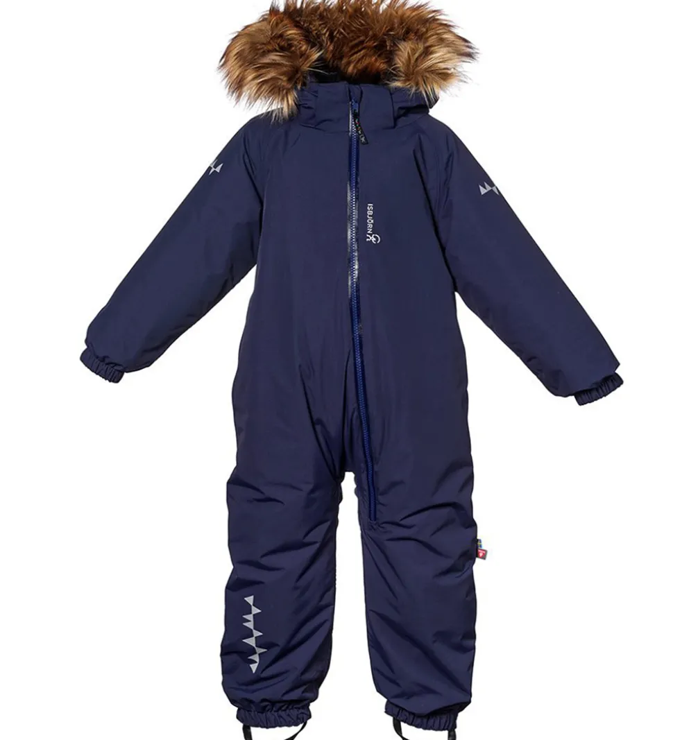 Skøn Isbjörn Of Sweden flyverdragt i navyblå. Flyverdragten har hvide logoprint på venstre bryst og hætten samt smarte refleksprint på lænden, begge skuldre og ankler.