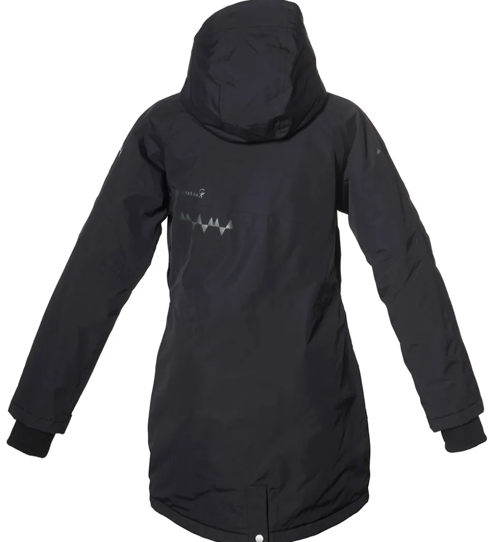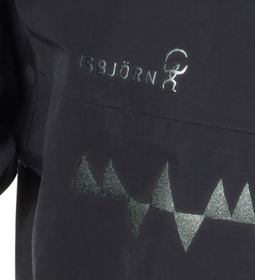 Lækker Isbjörn Of Sweden vinterfrakke i sort. Vinterfrakken har grå logoprint på venstre bryst og hætten samt smarte refleksprint på ryggen og højre skulder.