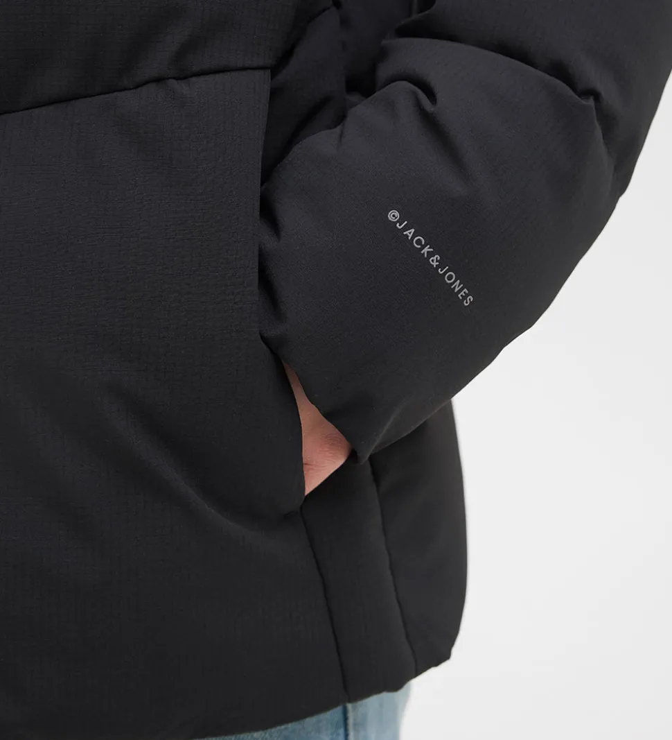 Lækker Jack & Jones dynejakke i sort med vandrette syninger.