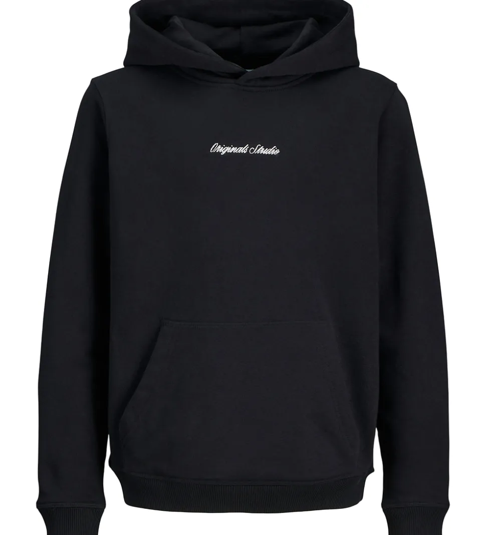 Elegant Jack & Jones hættetrøje i en stilren, sort farve med et diskret “Originals Studio” print på brystet.