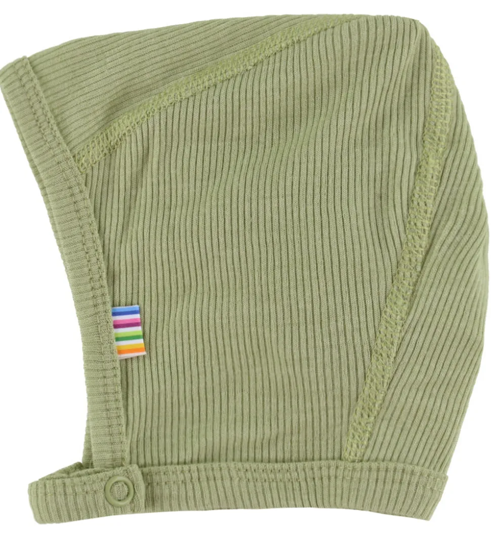 Elegant Joha babyhjelm i en blød grøn nuance. Joha babyhjelmen er designet med en fin ribstruktur, der strækker sig jævnt over hele materialet. Babyhjelmen fra Joha har en rund form, der tilpasser sig hovedet, og den er udstyret med en praktisk knaplukning ved hagen. Detaljerede syninger understøtter både stil og funktion. En lille farverig strop på siden tilføjer et diskret, dekorativt element.