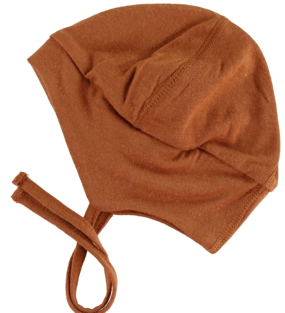 Joha babyhjelmen har en rund hovedform og en bred kant i åbningen. Hjelmen har bindesnore i bunden, så den kan bindes fast og ikke falder af. Babyhjelmen er i en lækker uldkvalitet, som holder godt på varmen og er dejlig blød.
