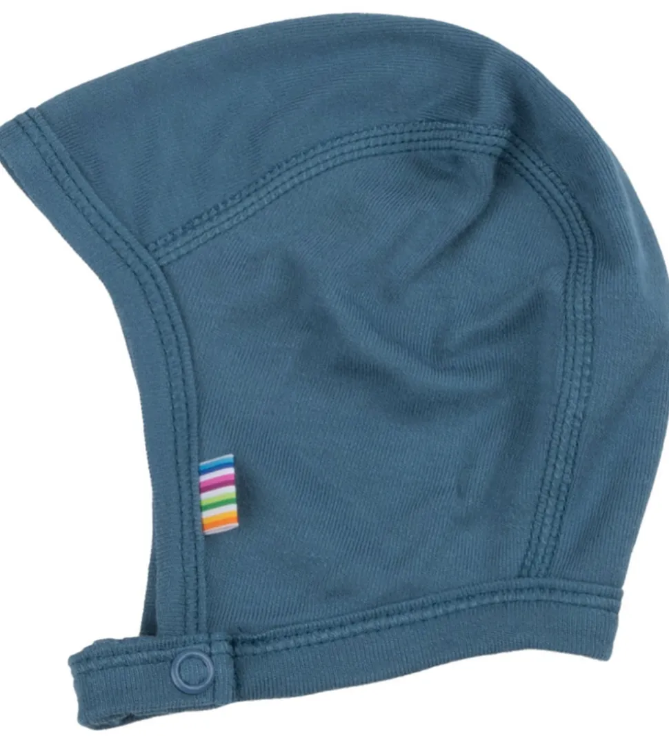 Babyhjelmen har en rund pasform, der sidder tæt omkring barnets hoved og beskytter mod vind og kulde. Joha babyhjelmen er designet med en ribkant langs kanten og en praktisk trykknaplukning under hagen som har to indstillinger for sikker pasform.