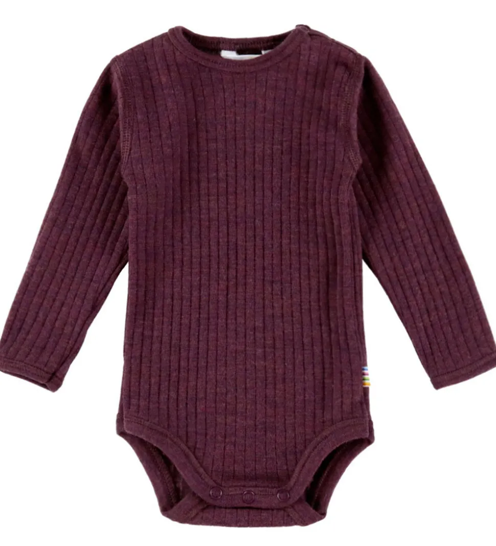 Elegant Joha body i en dyb, lilla farve. Den har en fin ribstruktur, der tilføjer en diskret tekstur til stoffet. De lange ærmer gør bodyen velegnet til køligere dage.