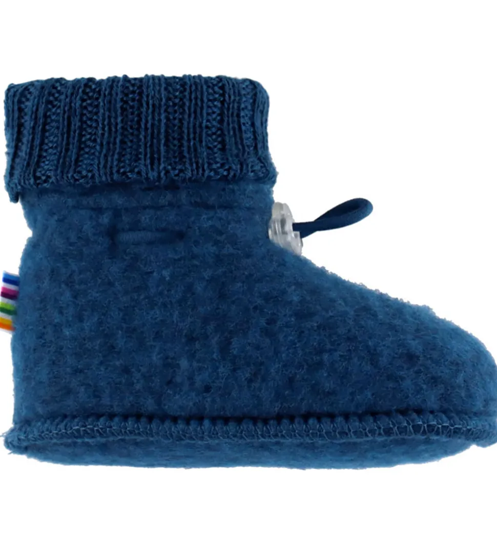 Joha futterne er fremstillet af en kraftig, filtet merinouldskvalitet, der kan holde barnets fødder dejlig varme på de kølige dage.