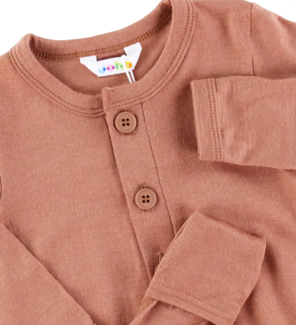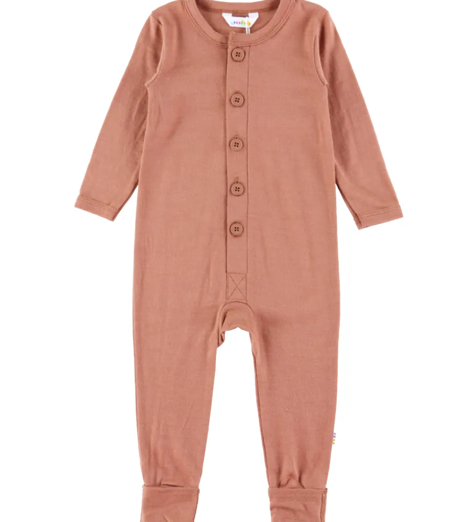 Skøn Joha heldragt i en flot rødbrun nuance med lange ærmer og praktiske fødder, der kan foldes ud.