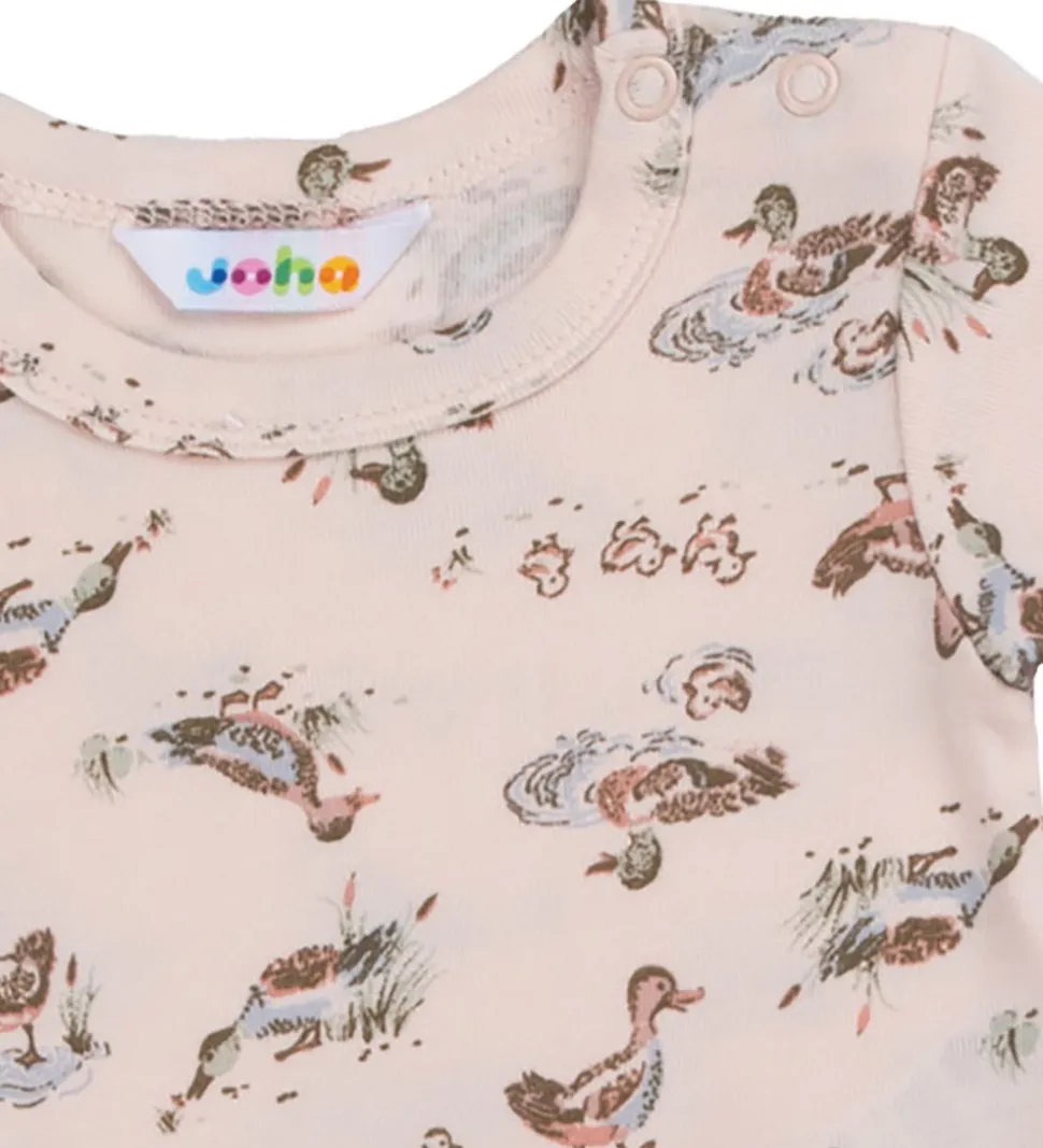 Skøn Joha sommerdragt i en lyserød nuance med søde ande- og ællingeprints.