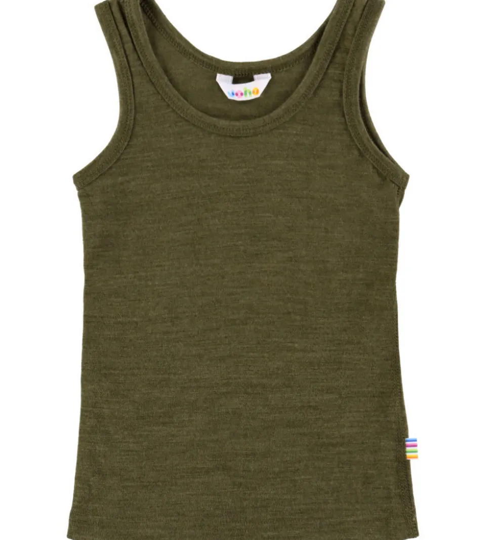 Flot Joha undertrøje i en enkelt olivengrøn nuance. Undertrøjen har brede stropper og en enkel ribkant omkring ærmegab og halsudskæring. Joha undertrøjen er lavet i en let og strækbar kvalitet, der sikrer en god pasform. En lille, farverig label med Joha logo pryder siden af undertrøjen.
