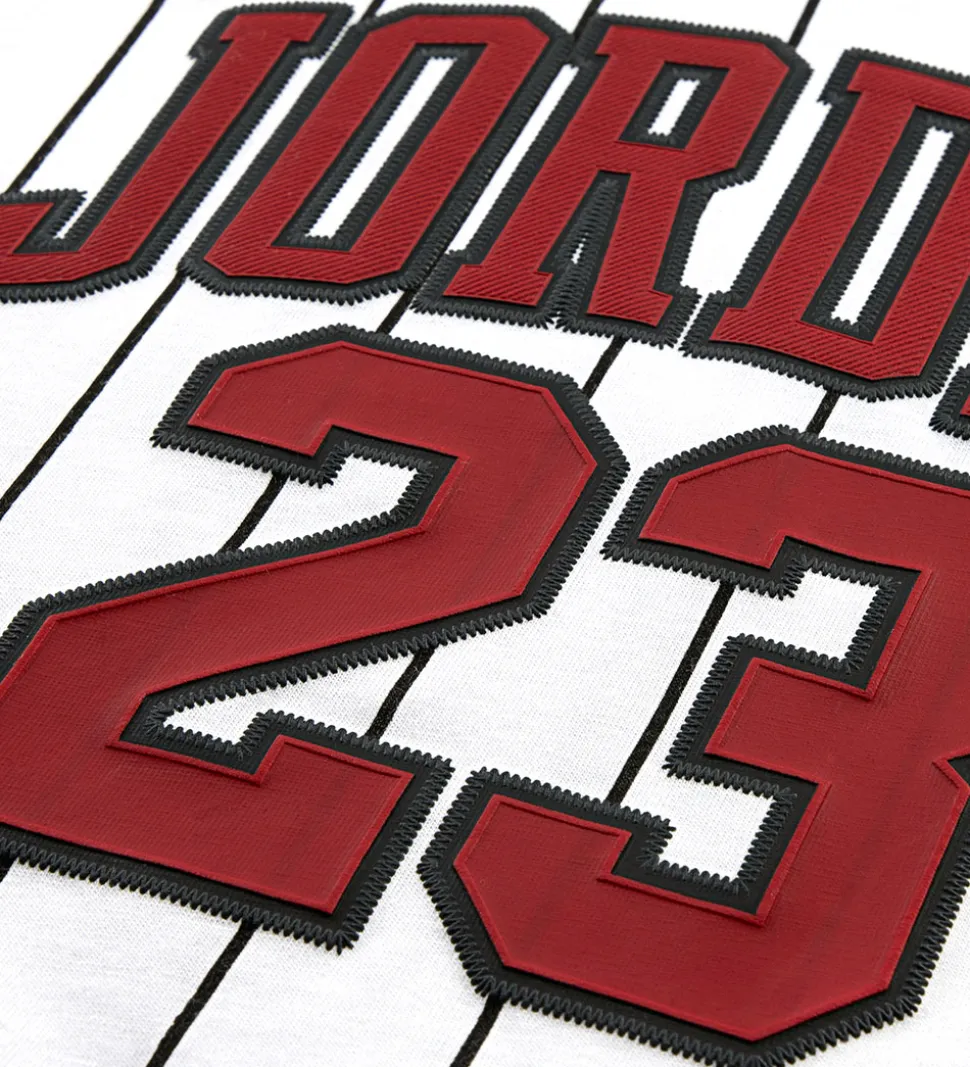 Jordan cardiganen har en fast hætte og brede ribkanter, og den lukkes med en lynlås. Fortil er der praktiske lommer. Sweatpantsene har lange ben med brede ribkanter, og i livet er der en bred elastikkant. T-shirten har et klassisk snit med korte ærmer og en smal ribkant i halsåbningen.