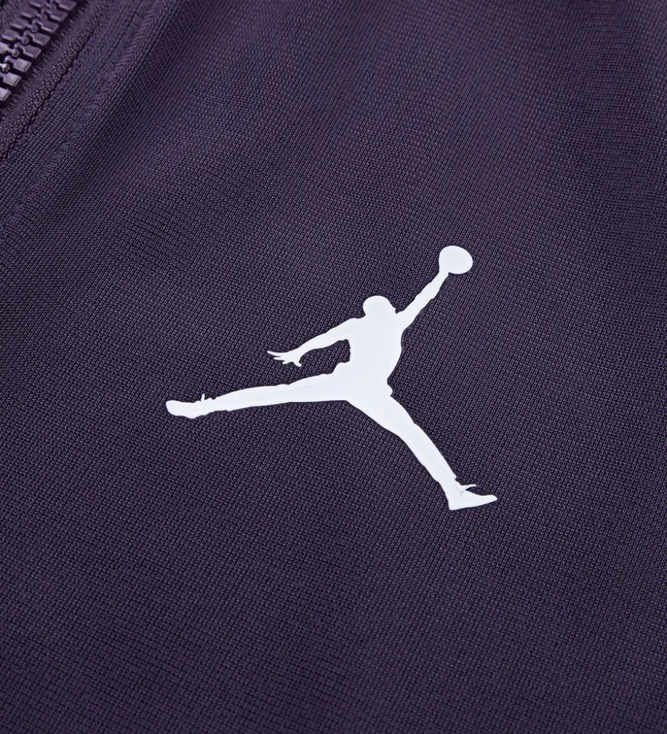 Smart Jordan træningssæt bestående af en lilla cardigan og et par lilla bukser med sorte logostriber.