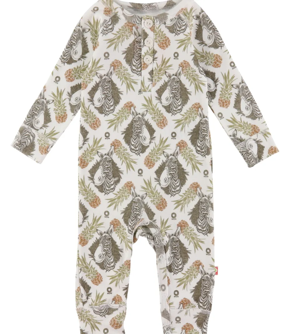 Skøn Katvig heldragt i hvid med et tropisk alloverprint af zebra og ananas i grønne og brune nuancer.