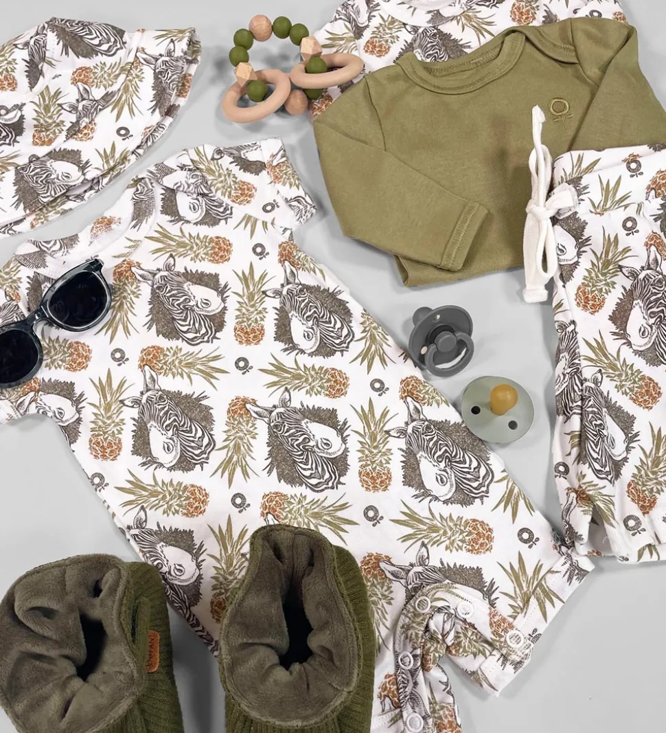 Nydelig Katvig sommerdragt i hvid med et tropisk alloverprint af zebra og ananas i grønne og brune farver.