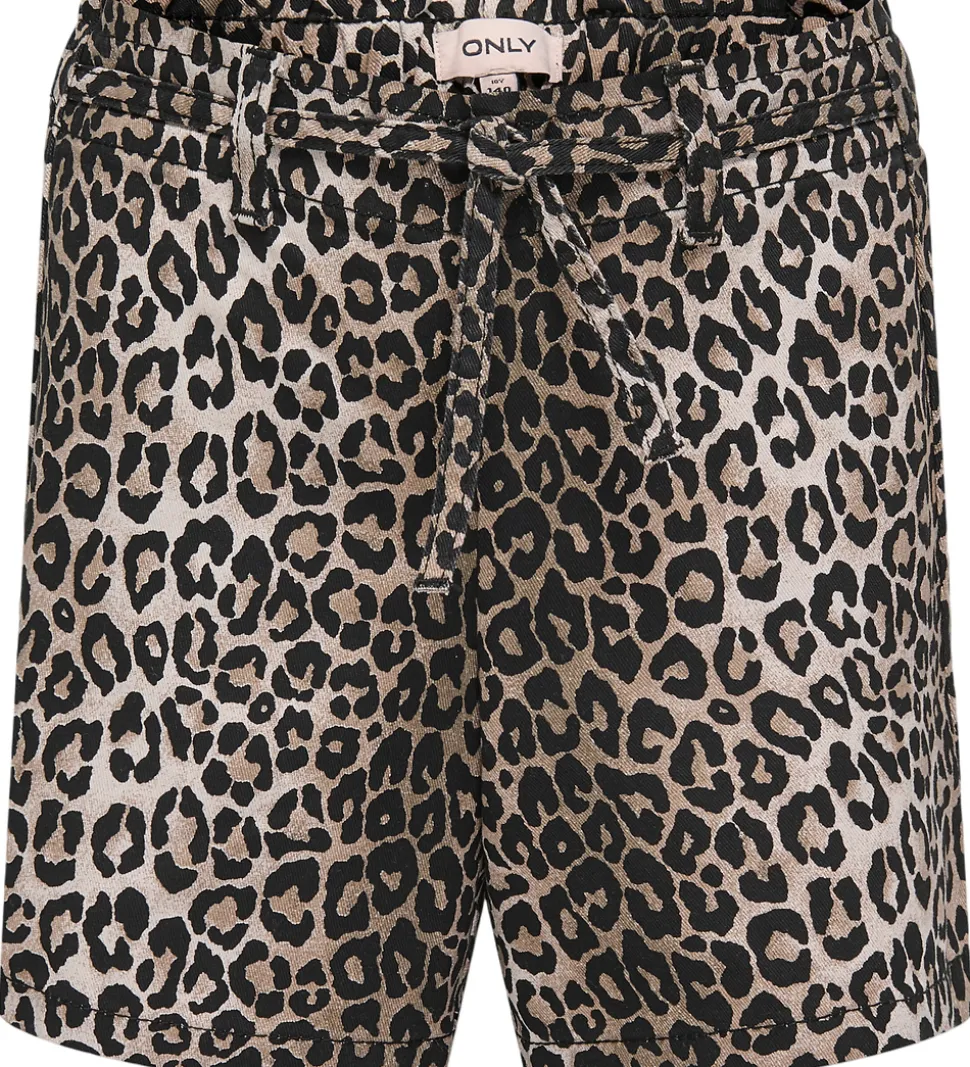 Stilfulde Kids Only shorts med et iøjnefaldende leopardmønster i nuancer af sort, brun og beige.