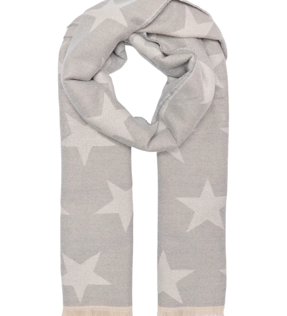Flot Kids Only tørklæde i lysegrå med stjerner i kontrastfarve. Kids Only tørklædet har fine frynser langs kanterne, der giver et ekstra pift til designet. Tørklædet er lavet i en super blød, strikket kvalitet.