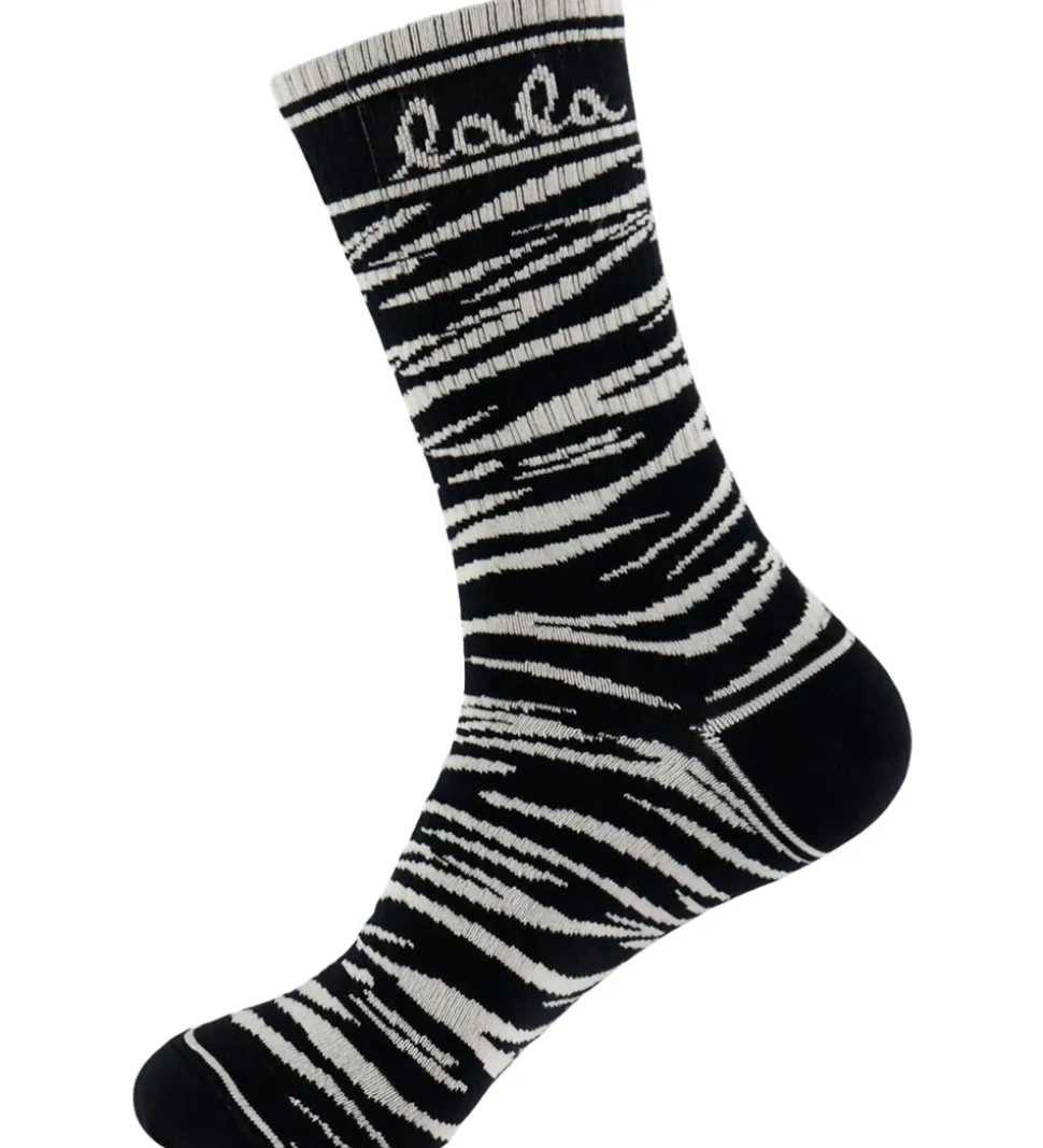 Lækre Lala Berlin strømper med et tigerstribet mønster i sort og hvid.