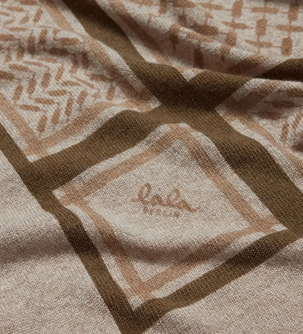 Lækker tLala Berlin tørklæde i lysebrun med det klassiske Kufiya mønster i brune nuancer.