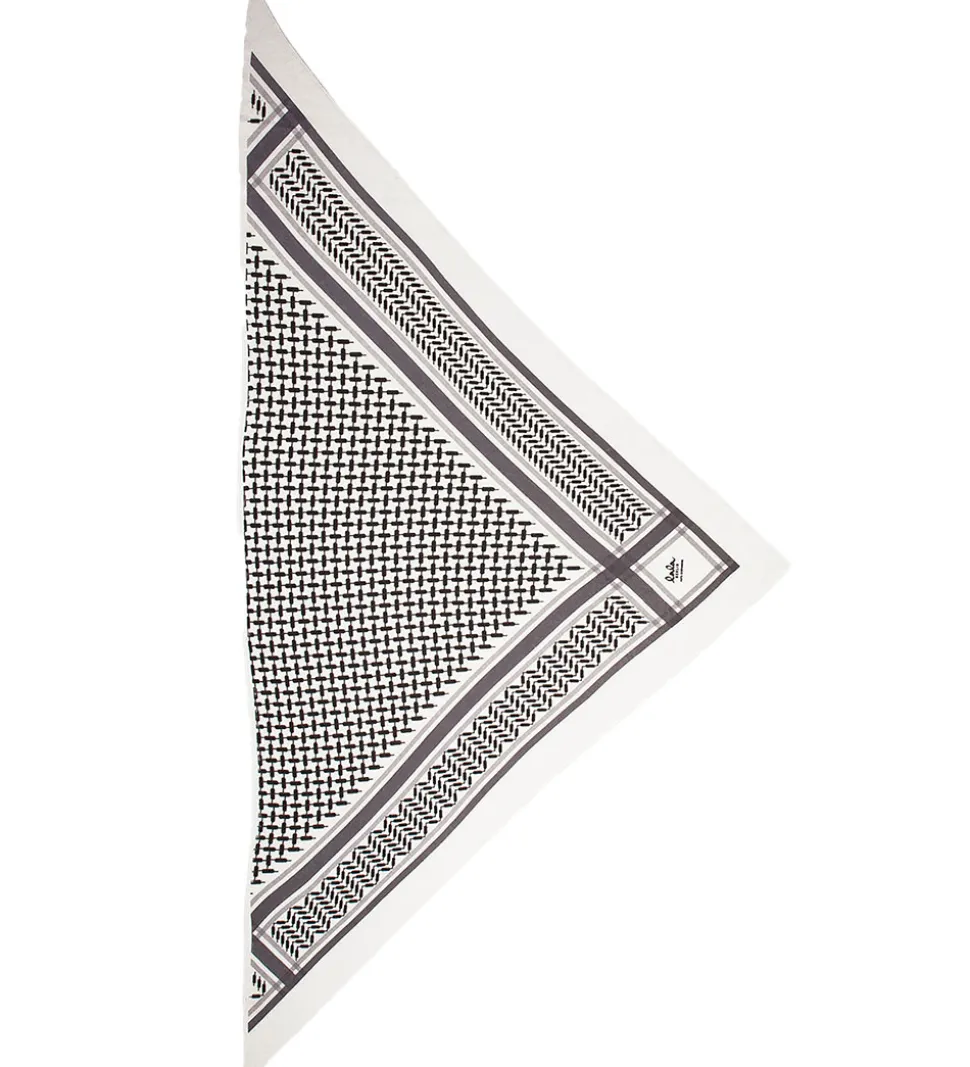 Fint Lala Berlin tørklæde i hvid og grå med det klassiske Kufiya mønster i sort.