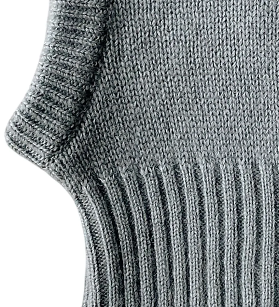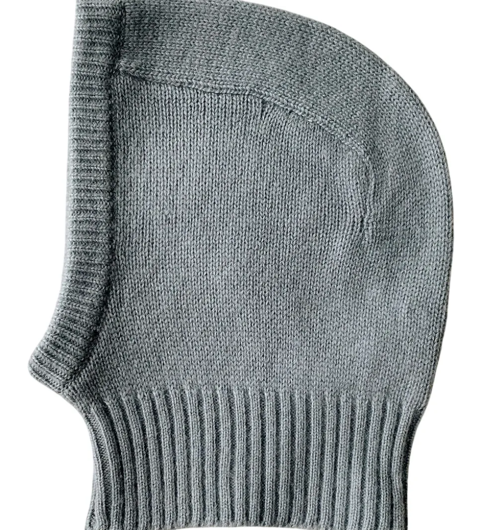 Flot Lalaby elefanthue i ensfarvet støvet blå. Lalaby elefanthuen har en rund hovedform og en bred ribkant i bunden. Denne eleafanthue er håndstrikket i Nepal, og den er lavet af eksklusivt kashmir.