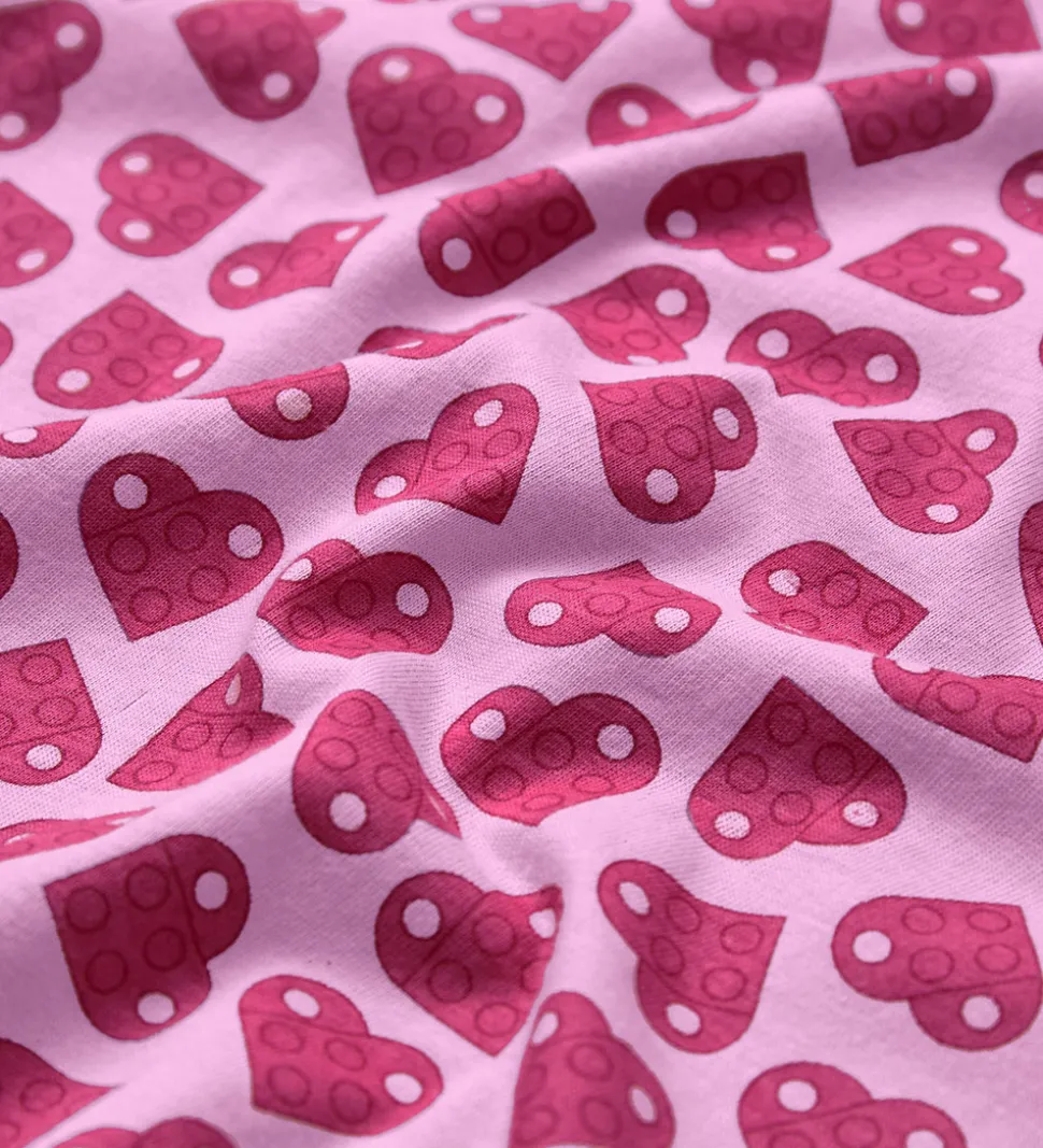Skøn LEGO® Wear top i en lys rosa nuance med et alloverprint af LEGO®-klodser formet som hjerter i en mørkere nuance. Toppen har brede skulderstropper med flæsedetaljer ved skuldrene.