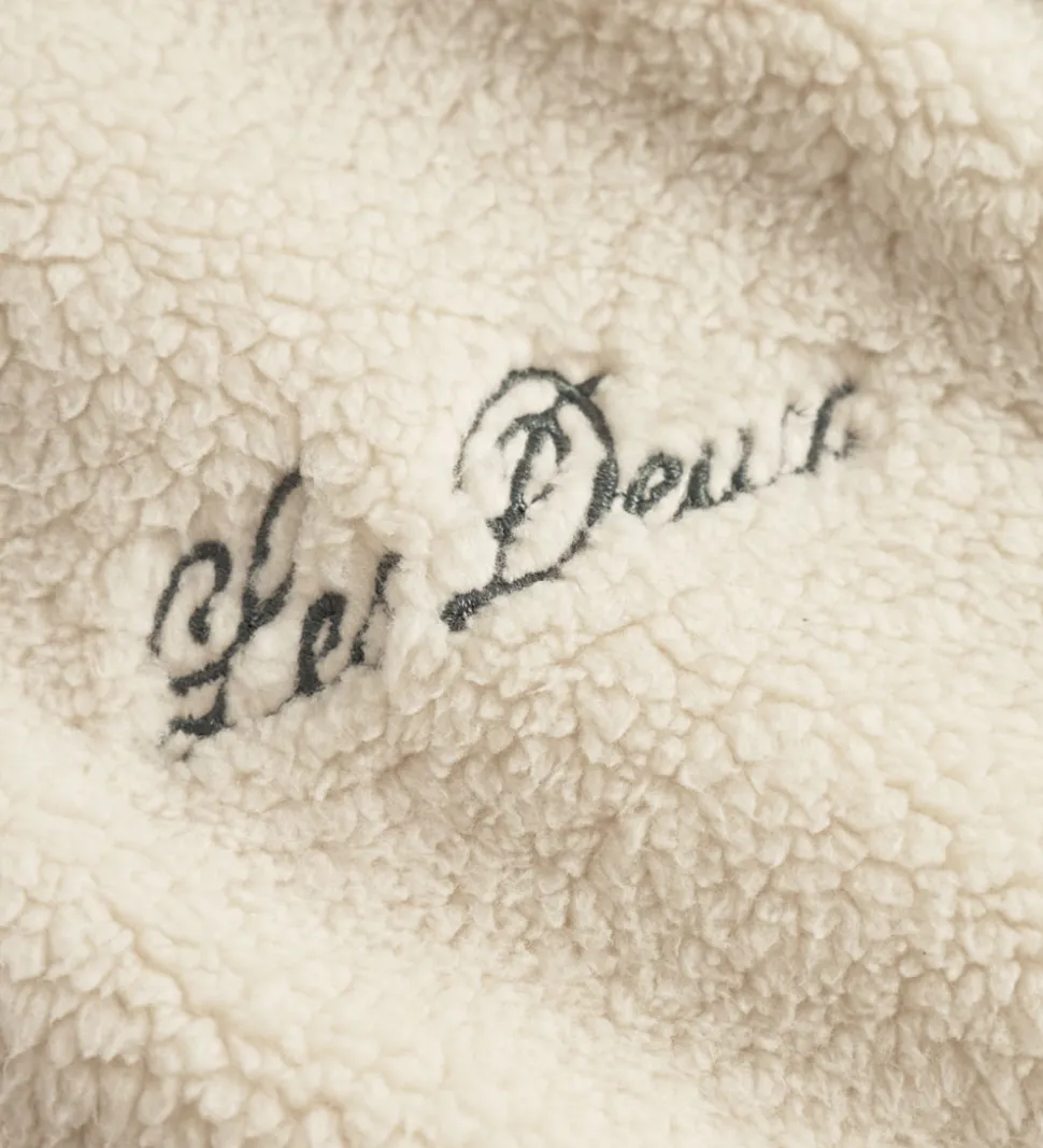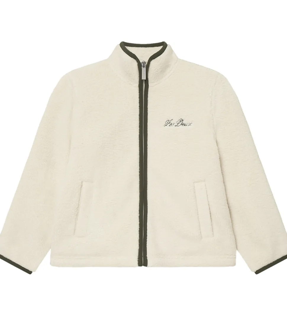Elegant Les Deux fleecejakke i en blød, råhvid nuance med mørkegrønne kanter. Fleecejakken er lavet af lækkert teddyfleece, der giver et tidløst og stilrent udtryk.