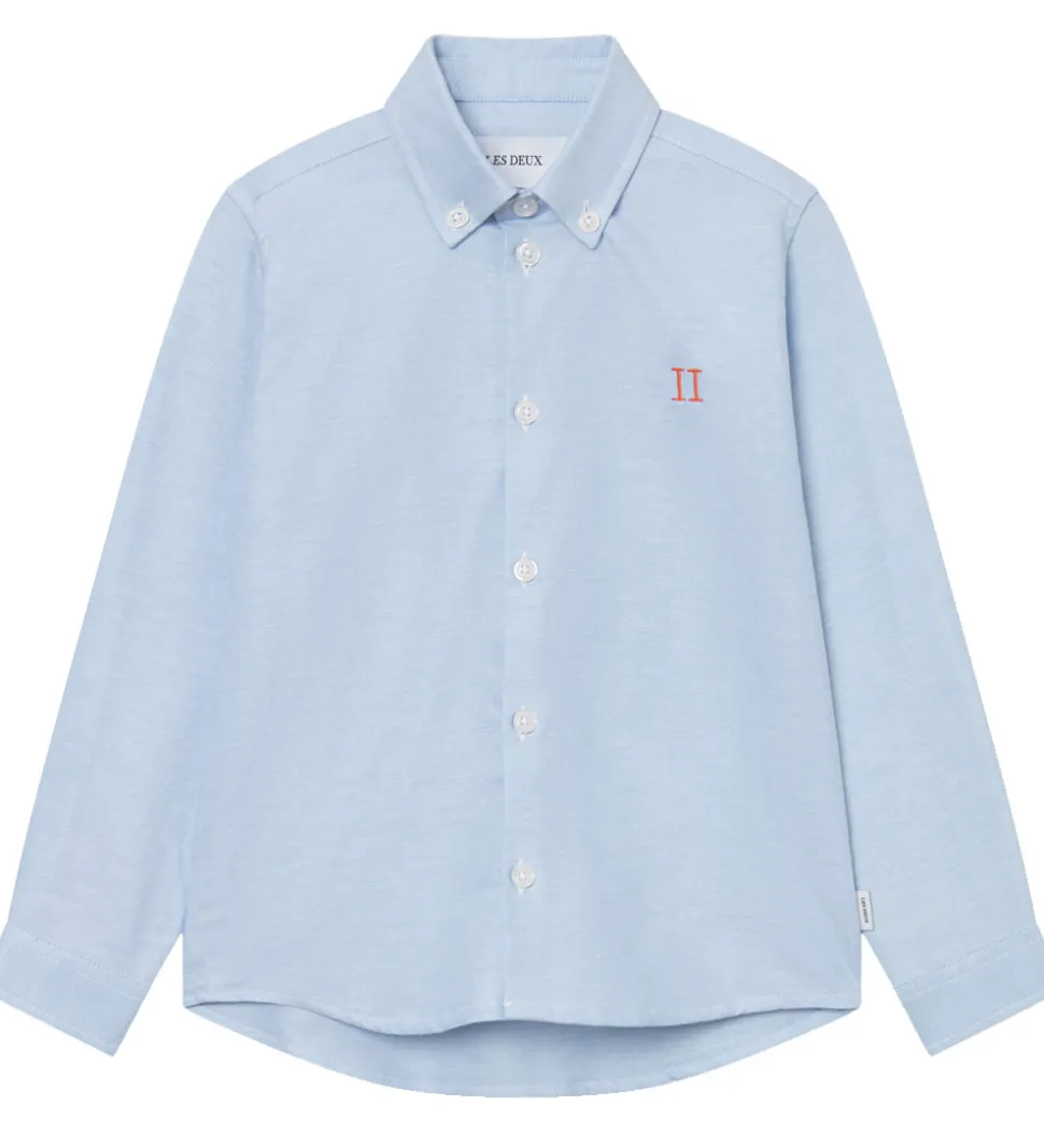 Frisk Les Deux skjorte i lyseblå med en diskret logo broderet i orange på brystet. Skjorten er ideel til et stilfuldt look i hverdagen.