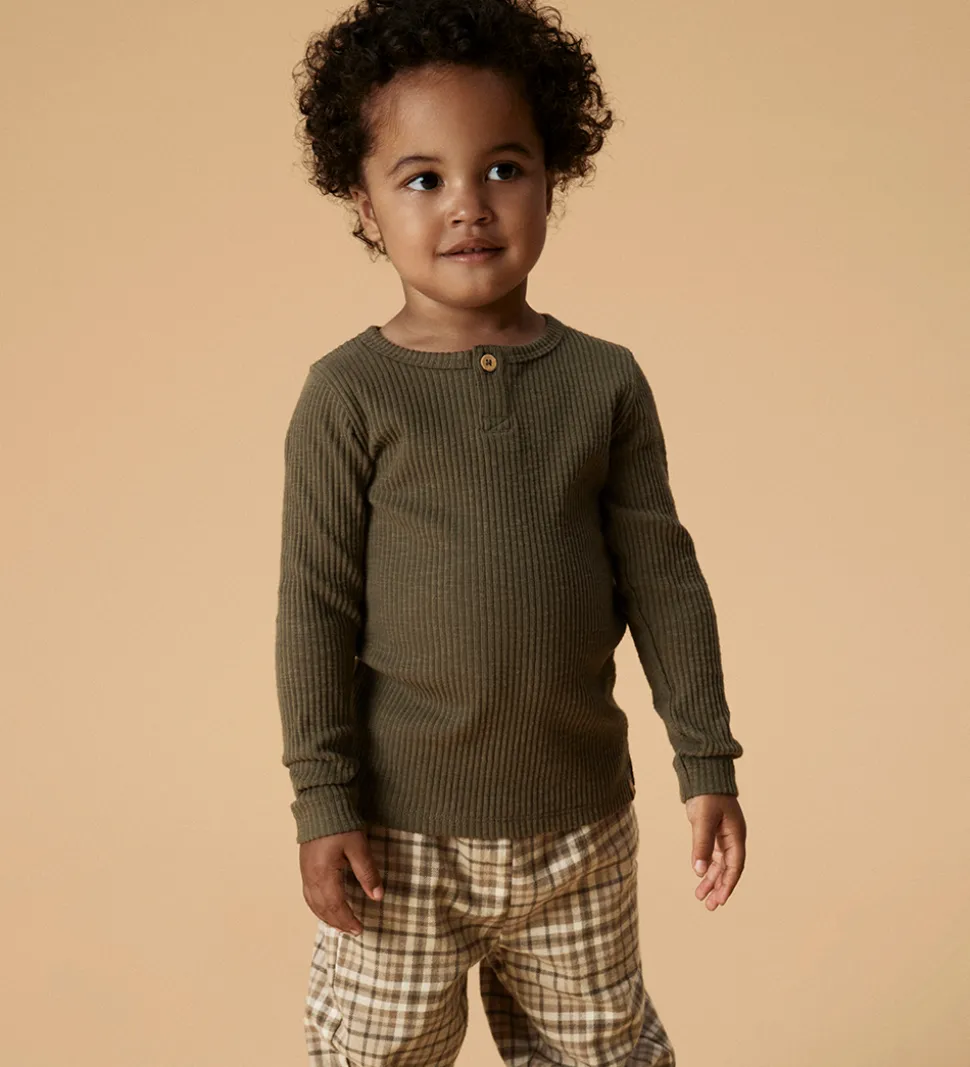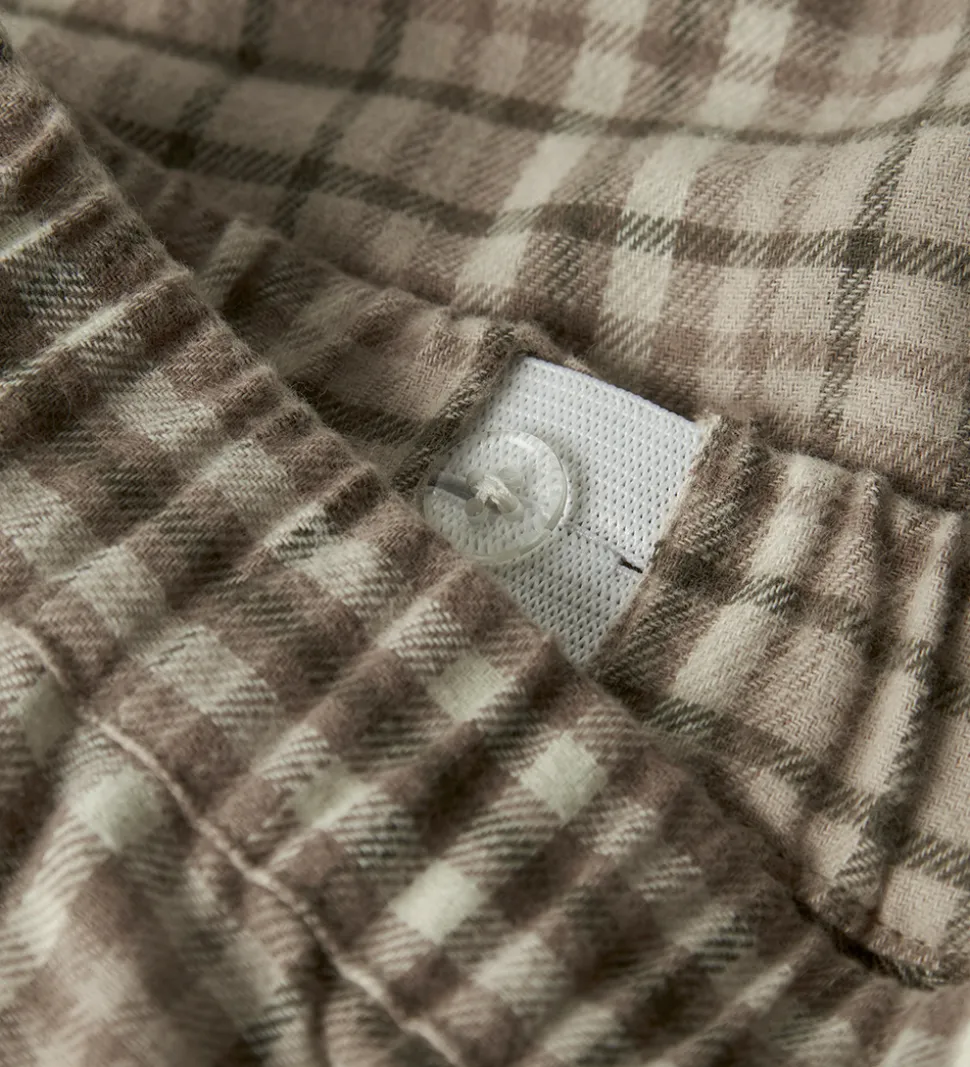 Stilfulde bukser fra Lil Atelier i et klassisk ternet mønster i nuancer af brun og beige. Lil Atelier bukserne er designet med en elastisk talje, som kan justeres med knapper indvendigt. Bukserne har en afslappet pasform med god vidde i benene. De har en let børstet overflade, som gør bukserne meget bløde og behagelige.