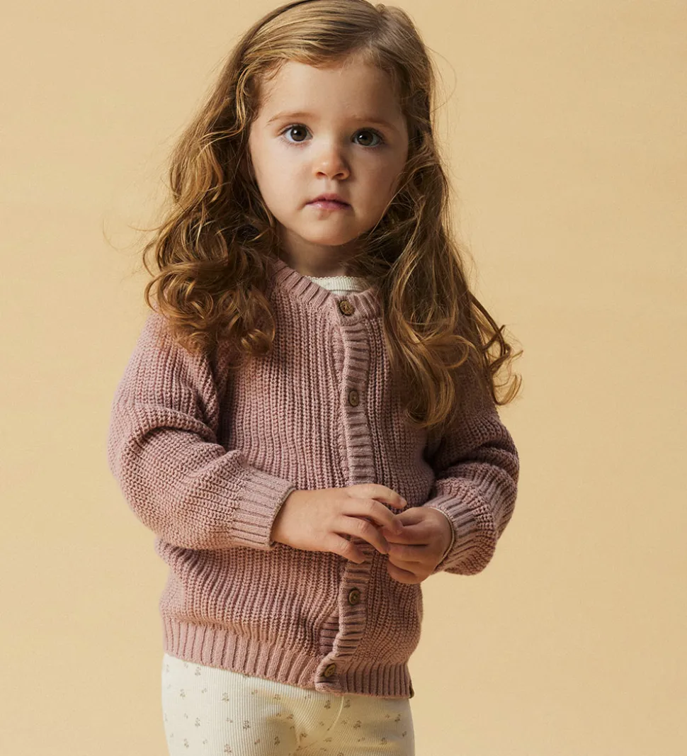 Fin Lil’ Atelier cardigan i en varm støvet rosa strik.