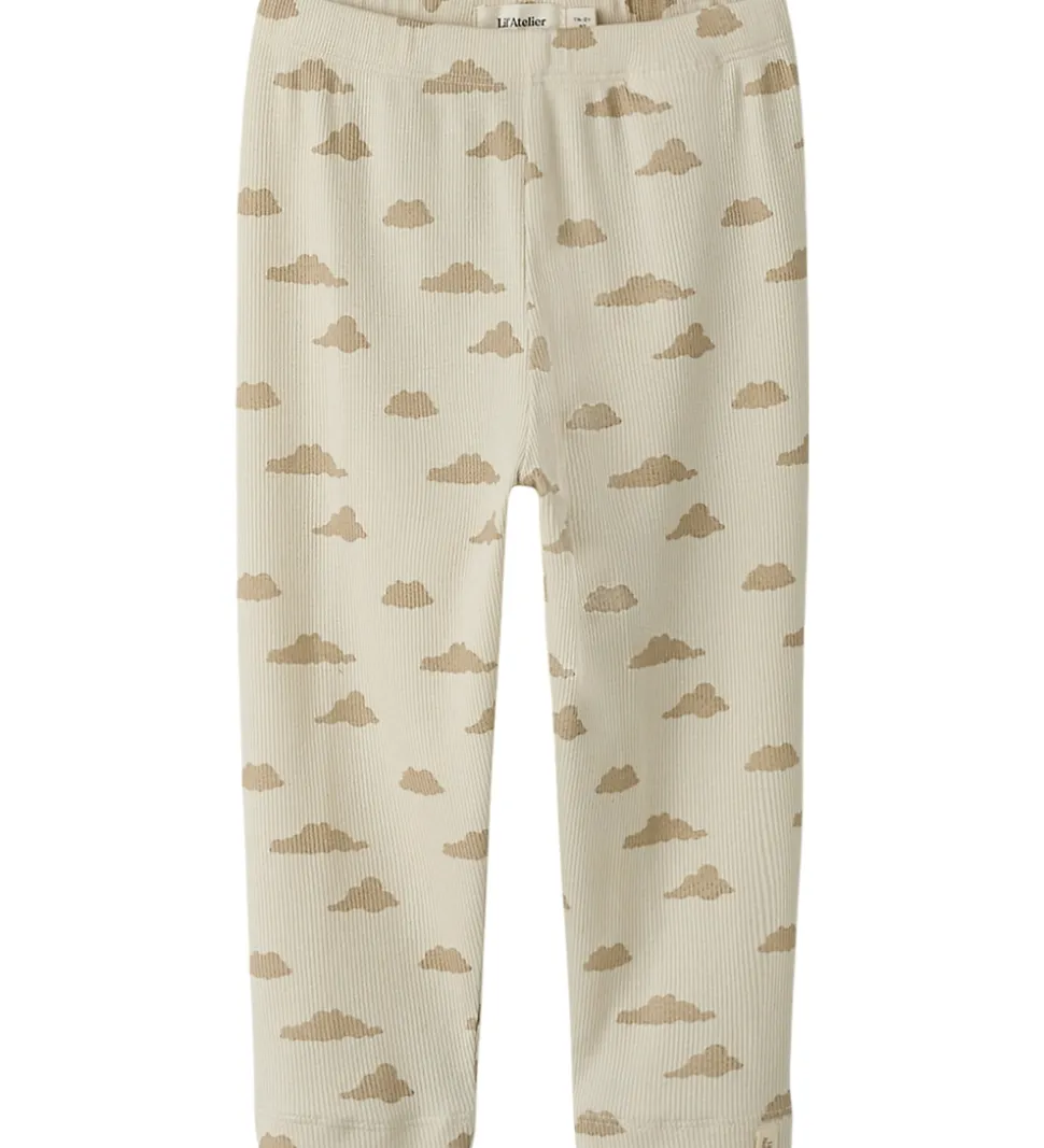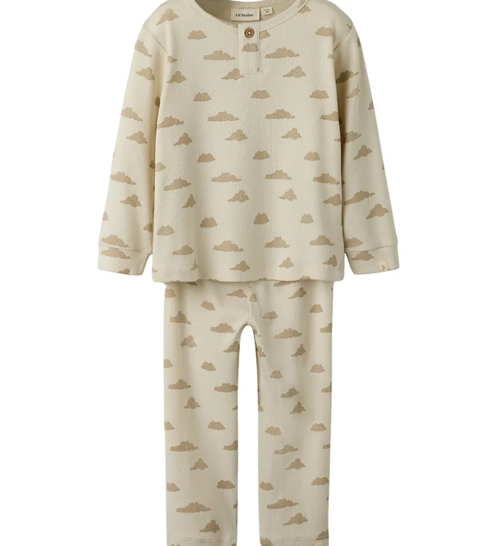 Dejligt Lil Atelier nattøj bestående af en natbluse med lange ærmer og et par natbukser med elastisk talje, som sikrer en god pasform. Nattøjet er prydet med et gennemgående print af skyer, som giver et charmerende udtryk.
