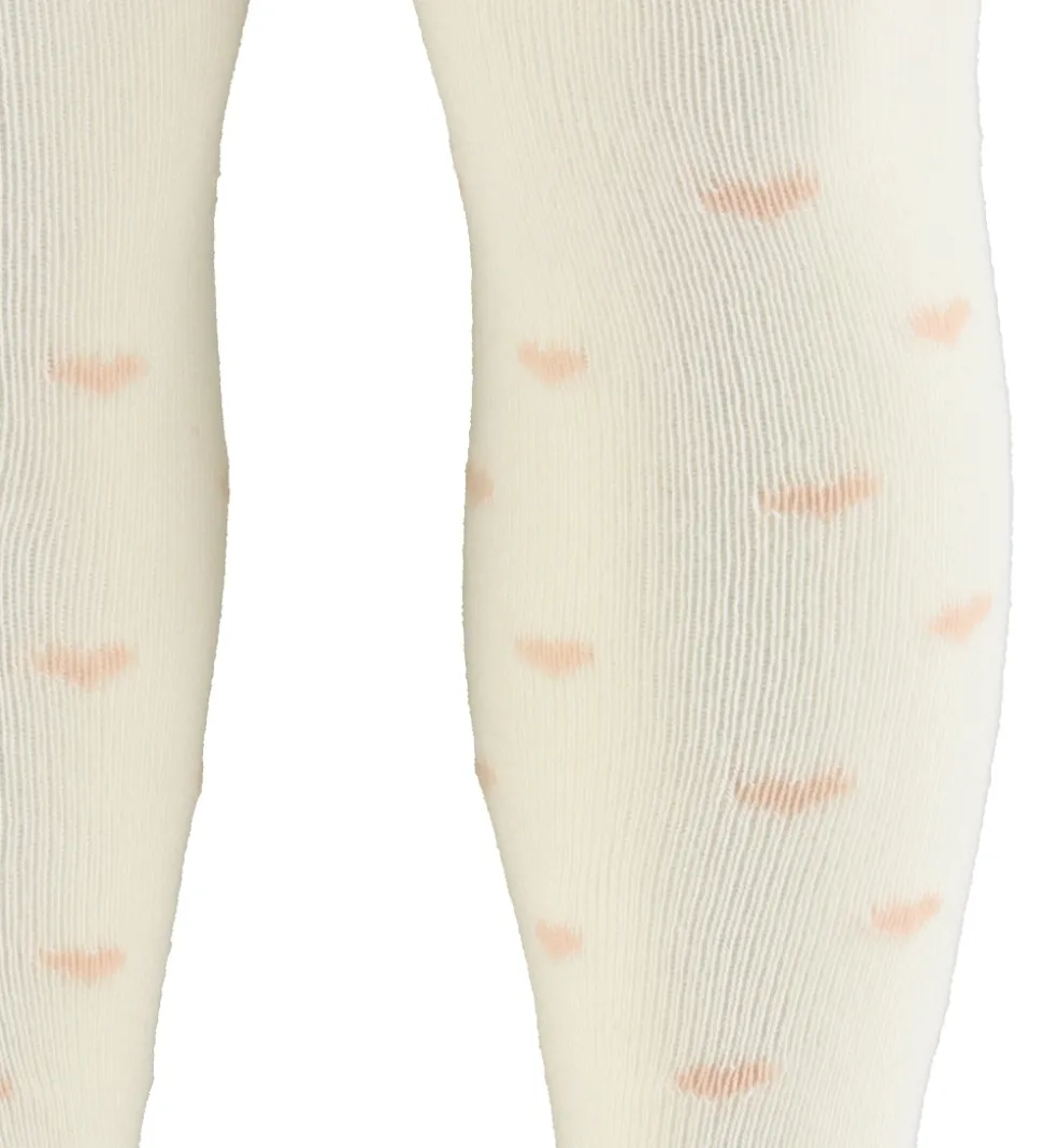 Fine strømpebukser fra Lil Atelier i hvid med et alloverprint af små rosa hjerter. Strømpebukserne har en behagelig strikket struktur og elastik i livet, som giver en god pasform.