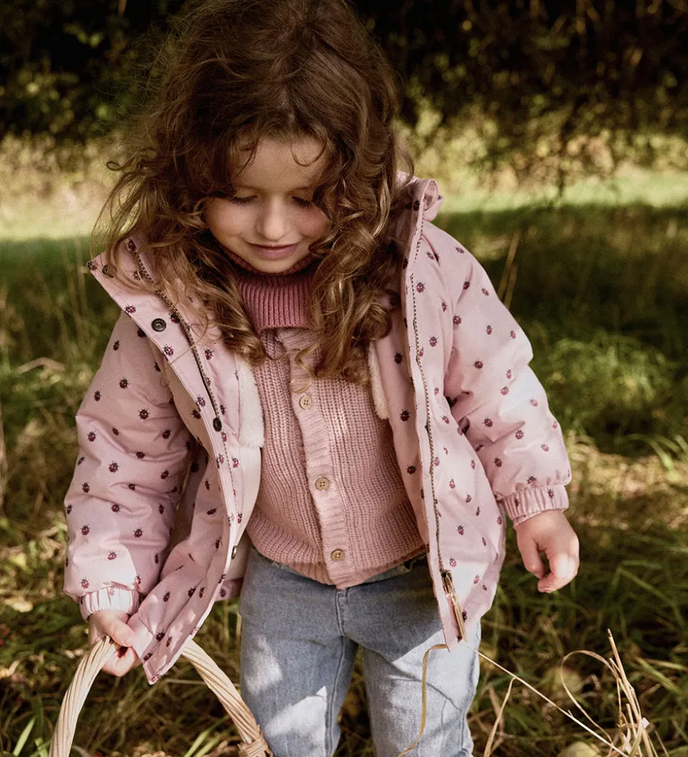 Fin Lil’ Atelier vinterjakke i støvet rosa med et flot mariehøneprint.