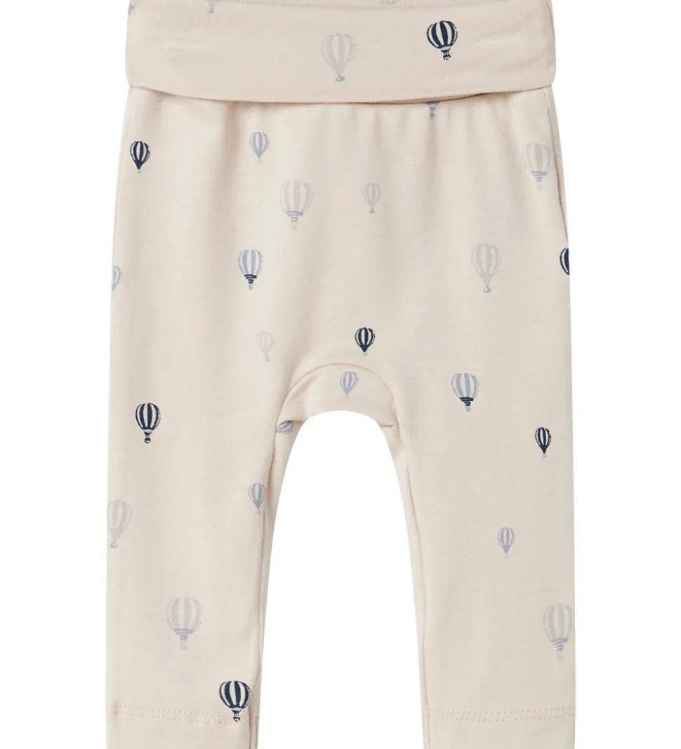 Bløde bukser fra MarMar i en lysebeige nuance med et flot alloverprint af luftballoner i blå nuancer. MarMar bukserne har en elastisk talje, der sikrer en behagelig pasform. Benene afsluttes med sømkanter, som giver et enkelt look.
