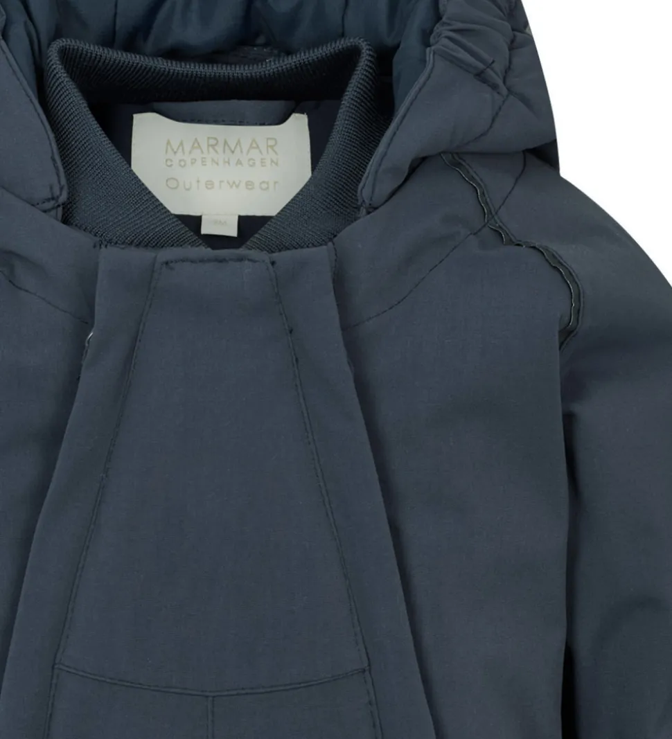 Stilfuld MarMar flyverdragt i mørkeblå med praktiske refleksdetaljer.