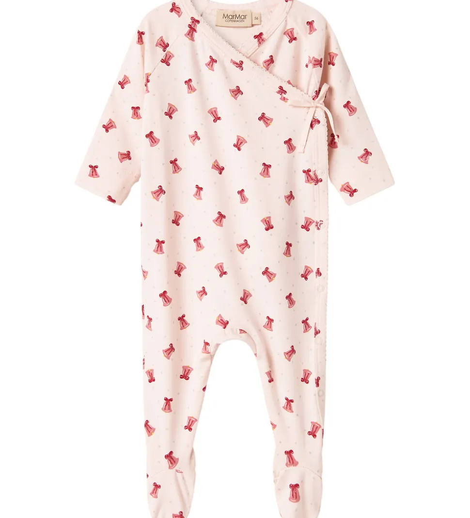 Flot MarMar heldragt i rosa med et charmerende print af små røde klokker.