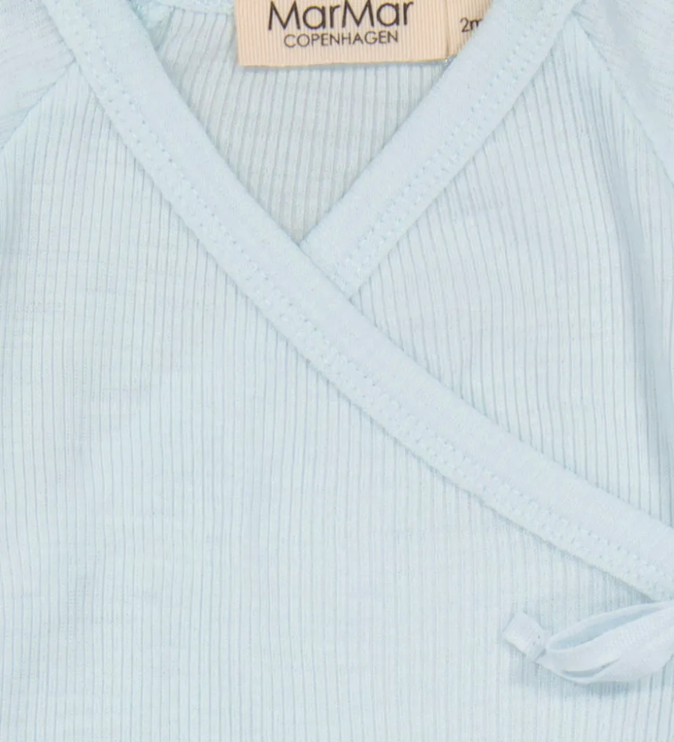 MarMar heldragten har en praktisk slå-om-lukning med knytbånd på siden samt trykknapper langs benene for nem påklædning. Pasformen sikres med de fleksible materialer og det tidløse design. Heldragten er lavet i en let uldkvalitet.