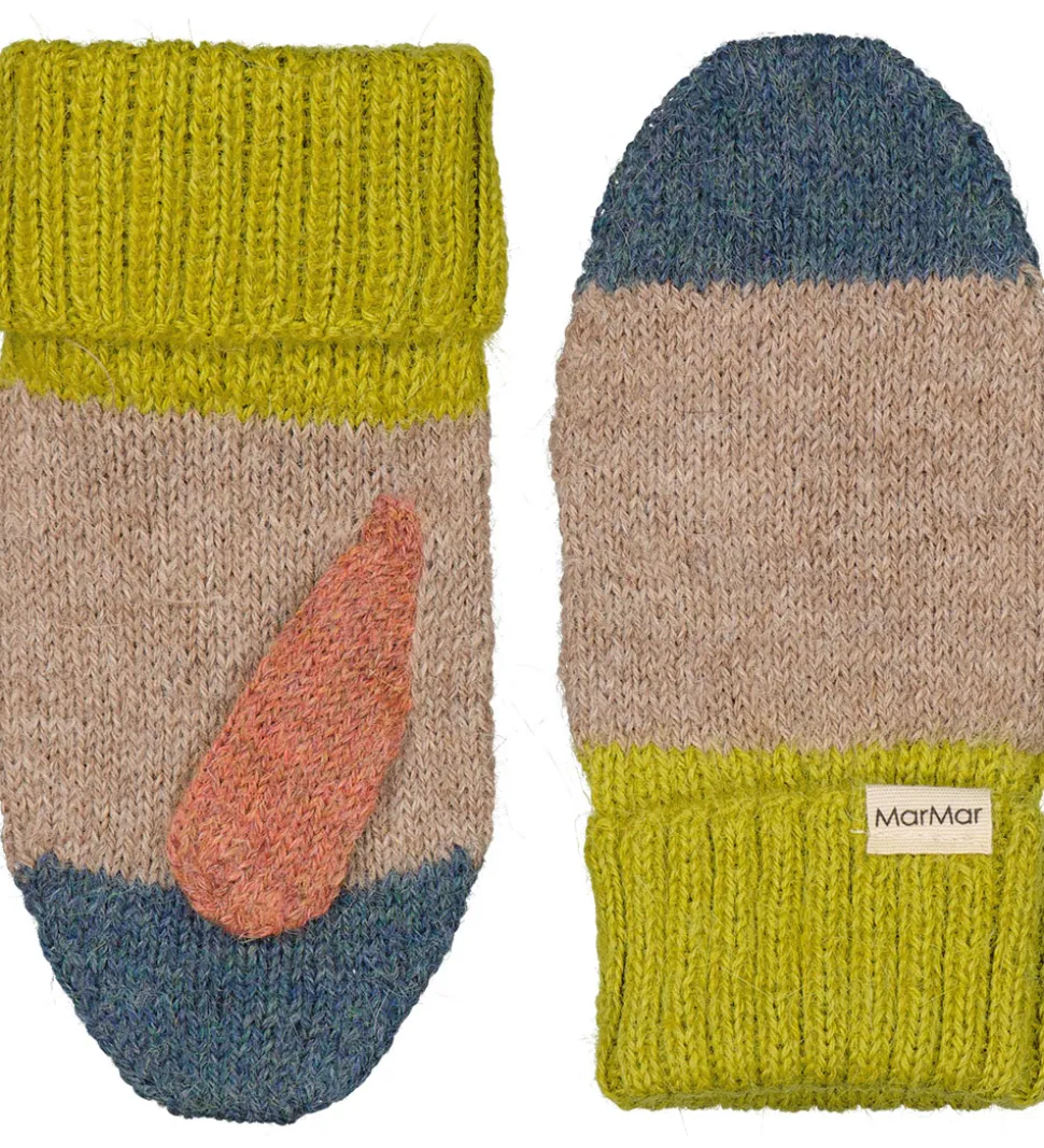 Flotte MarMar luffer i beige med kontrastfarver i gul, orange og blå. Et enkelt og stilfuldt design med et diskret MarMar logo. Komfortable og praktiske til hverdagsbrug. MarMar lufferne er lavet i en strikket kvalitet af lunt og blødt alpakauld.