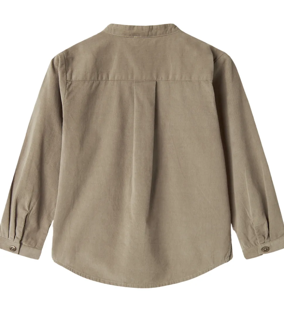 Enkel MarMar skjorte i en stilren brun nuance, og den er lavet af blødt fløjl i en fastvævet kvalitet. Skjorten har lange ærmer og en rund halsudskæring uden krave, der giver et moderne udtryk. MarMar skjorten er udstyret med en gennemgående knaplukning og en let buet kant forneden, hvilket sikrer en flot pasform.