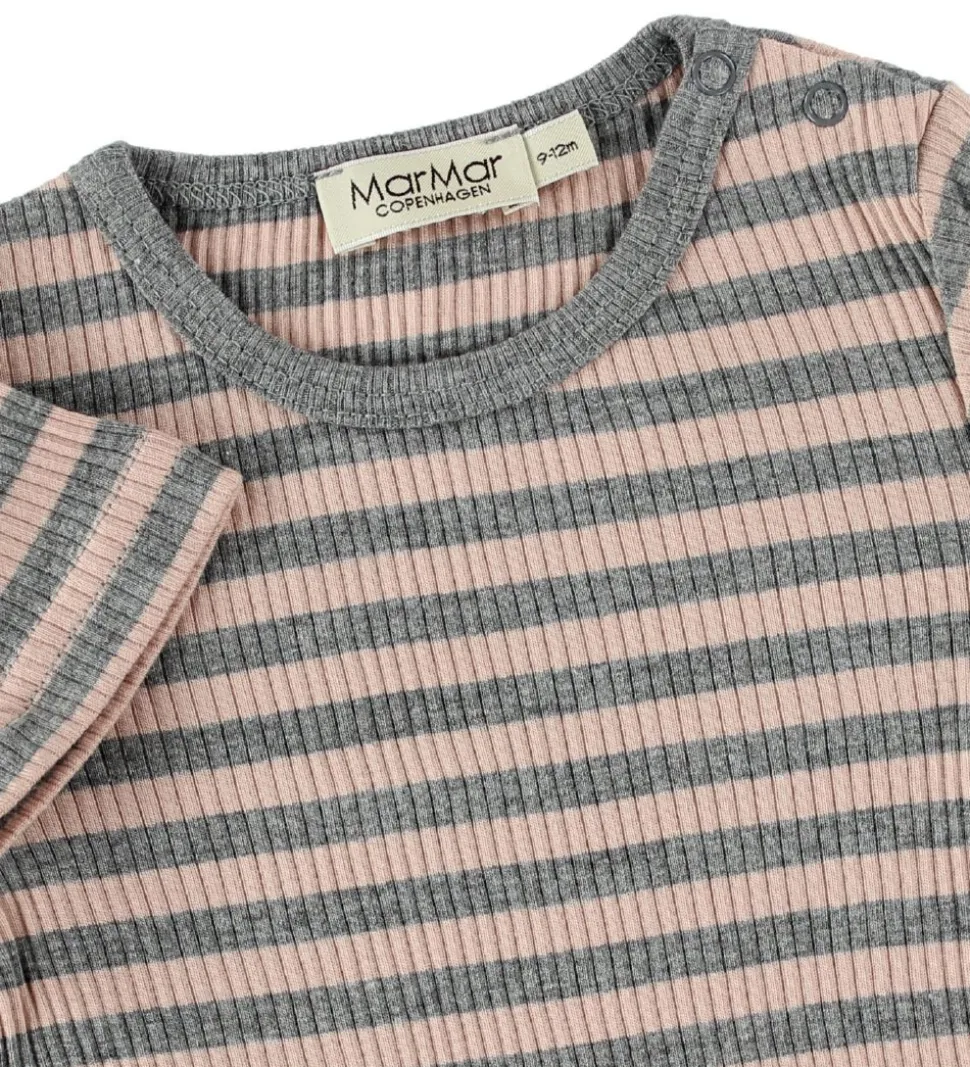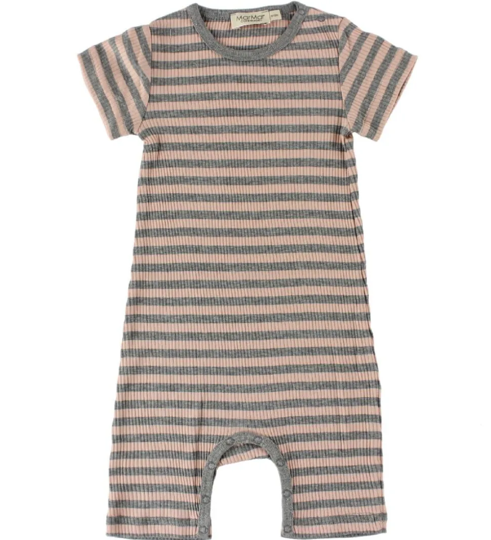 Skøn MarMar sommerdragt i rib med striber i rosa og gråmeleret.