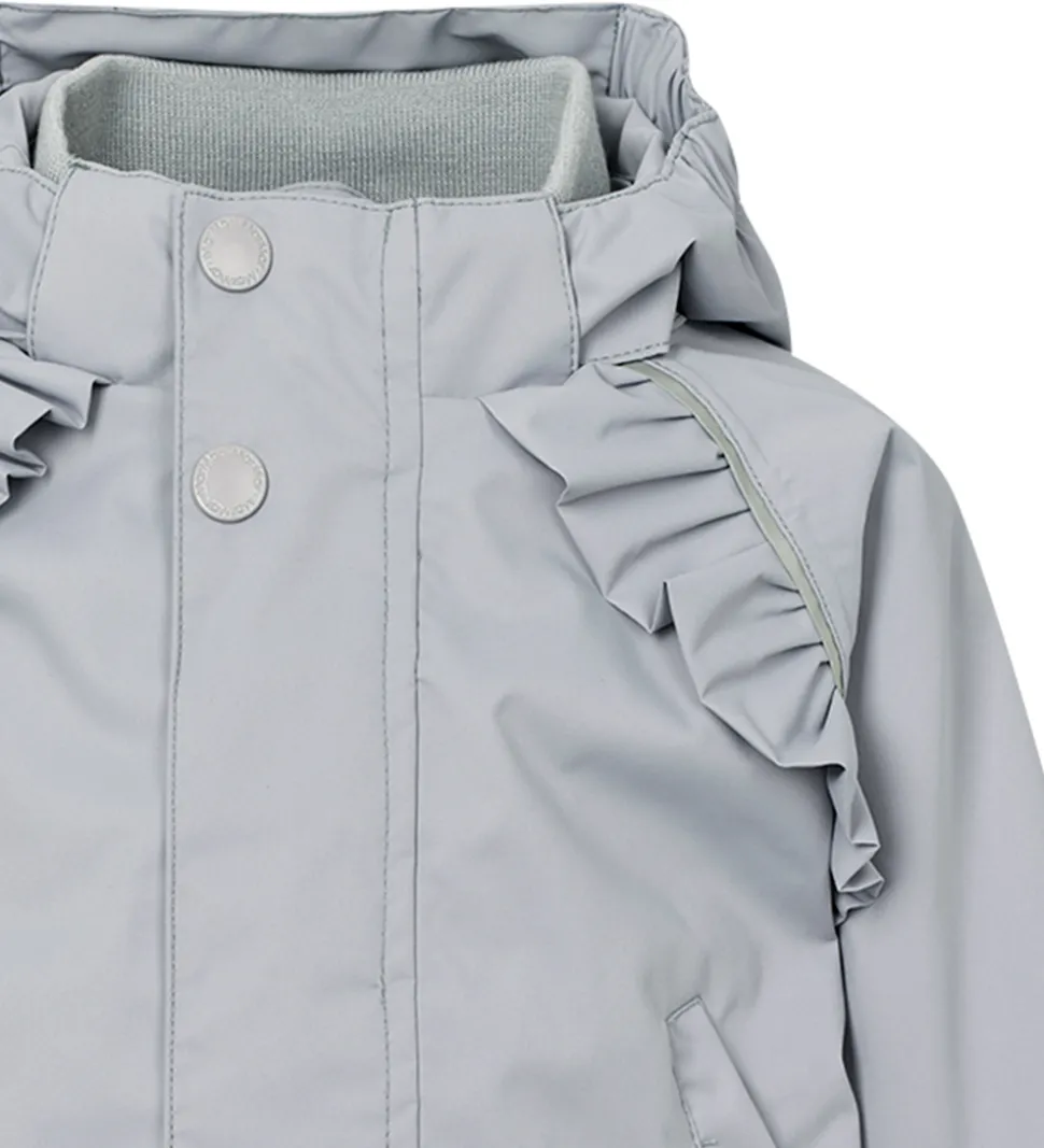 MarMar sommerjakken har en aftagelig hætte, som sidder fast med skjulte trykknapper. Ærmerne har brede ribkanter, og i siderne har jakken ribkant i bunden. Foran og bagved ærmerne sidder der søde flæser.