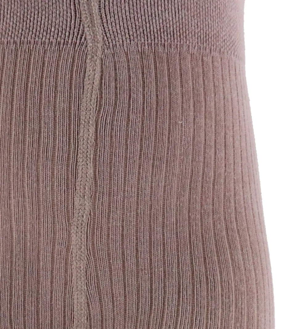 Flotte MarMar strømpebukser i en ensfarvet mørkelilla med ribstruktur. Strømpebukserne har elastik i livet, hvilket sikrer en optimal pasform. MarMar strømpebukserne er designet med fokus på enkelthed og funktionalitet.