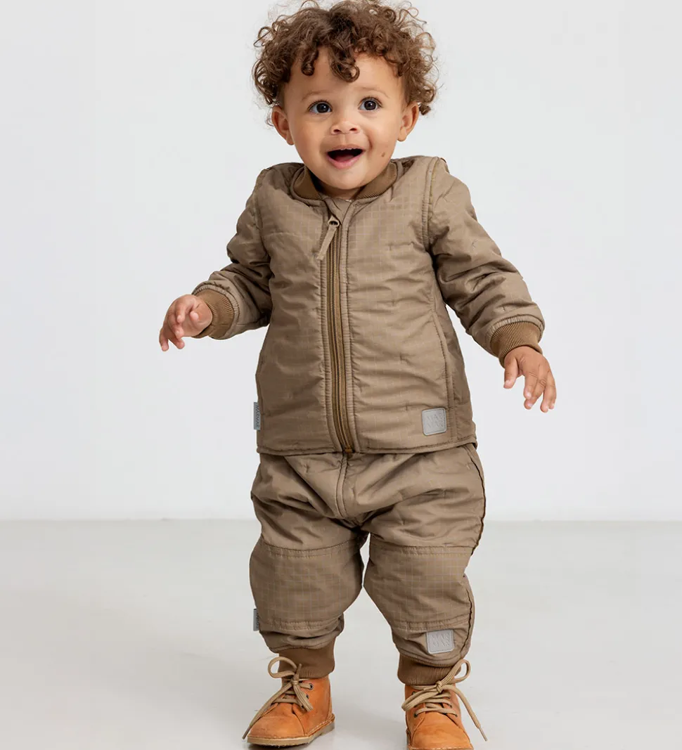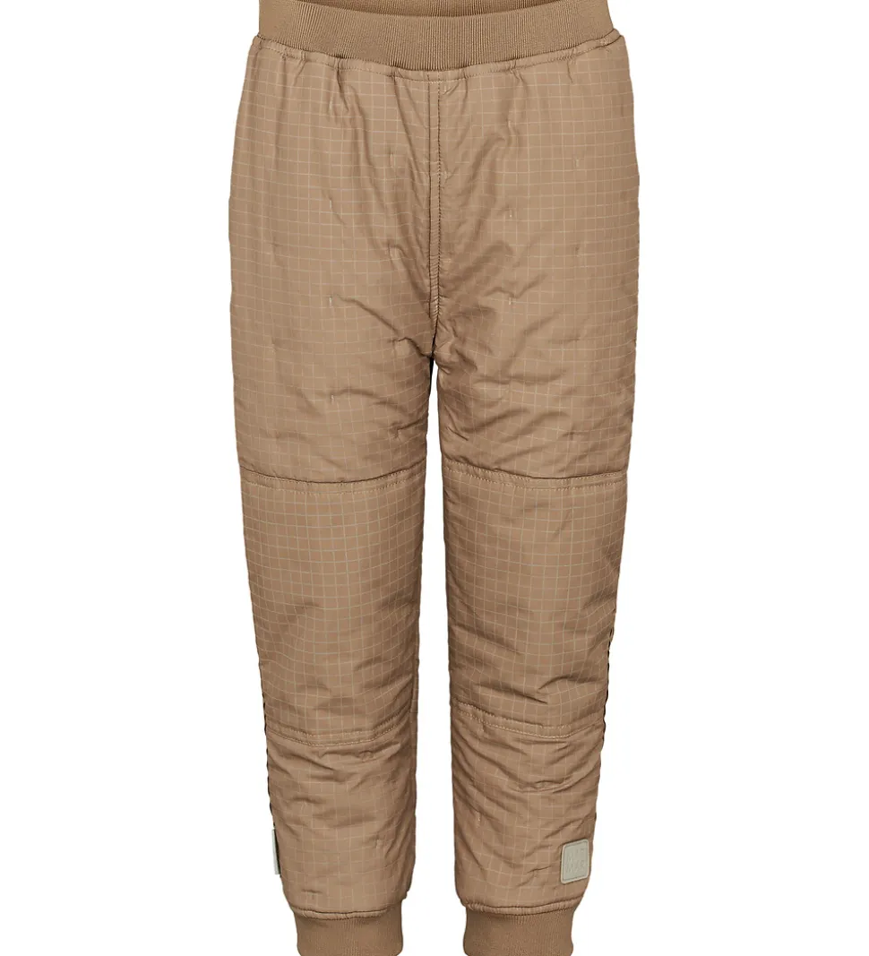 Flotte MarMar termobukser i brun med et ternet mønster med refleksprint.