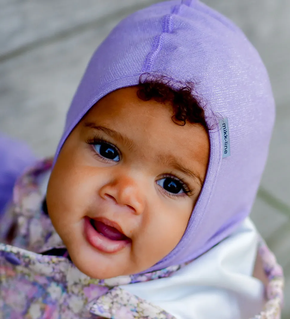 Smart Mikk-Line elefanthue i en fin lys lilla med glimmertråd. Huen har et enkelt design, der giver god dækning og varme, perfekt til køligere dage.