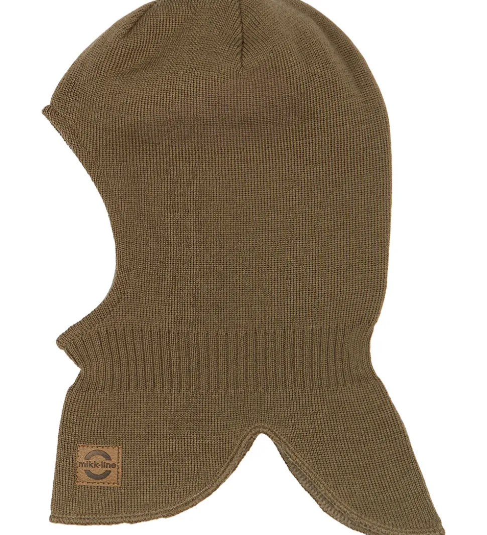 Mikk-Line elefanthuen har en rund hovedform med rib omkring halsen og en praktisk split-effekt i bunden. I siderne er der ekstra forstærkninger, som beskytter ørerne mod kold vind. Elefanthuen er udvendigt strikket i en blød blanding af merinould og akryl og har et glatvævet bomuldsfor.